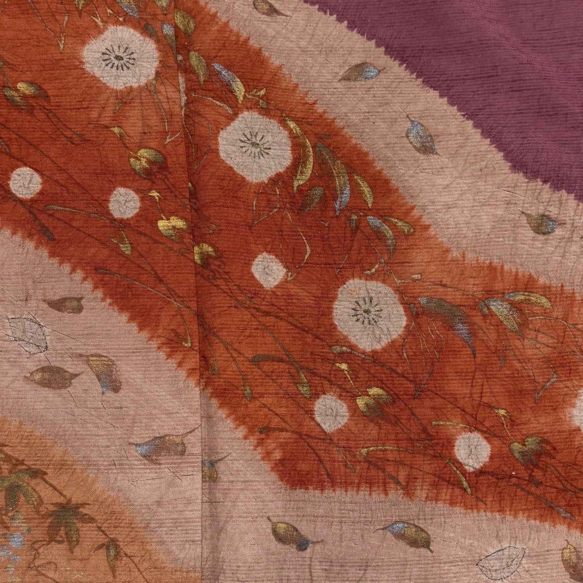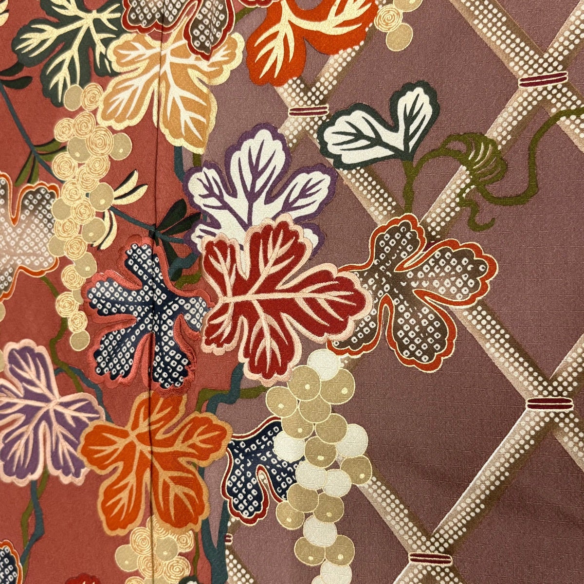 小紋 身丈159cm 裄丈63cm S 袷 千地泰弘 落款あり 葡萄 霞 金彩 ぼかし 灰紫 正絹 秀品