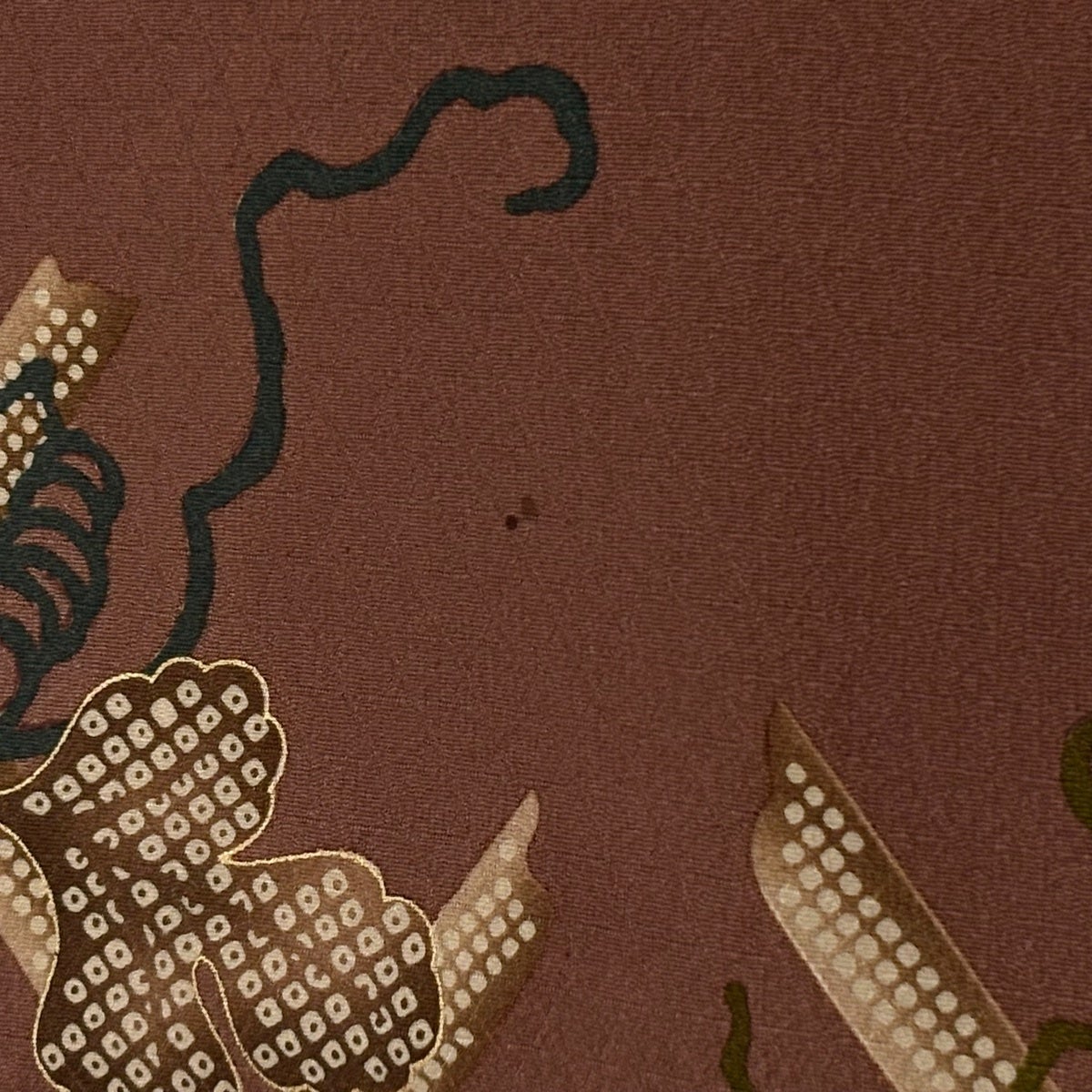 【美品】 紬 身丈160.5cm 裄丈65.5cm M 袷 袋帯セット ますいわ屋 葡萄 焦茶色 正絹 秀品