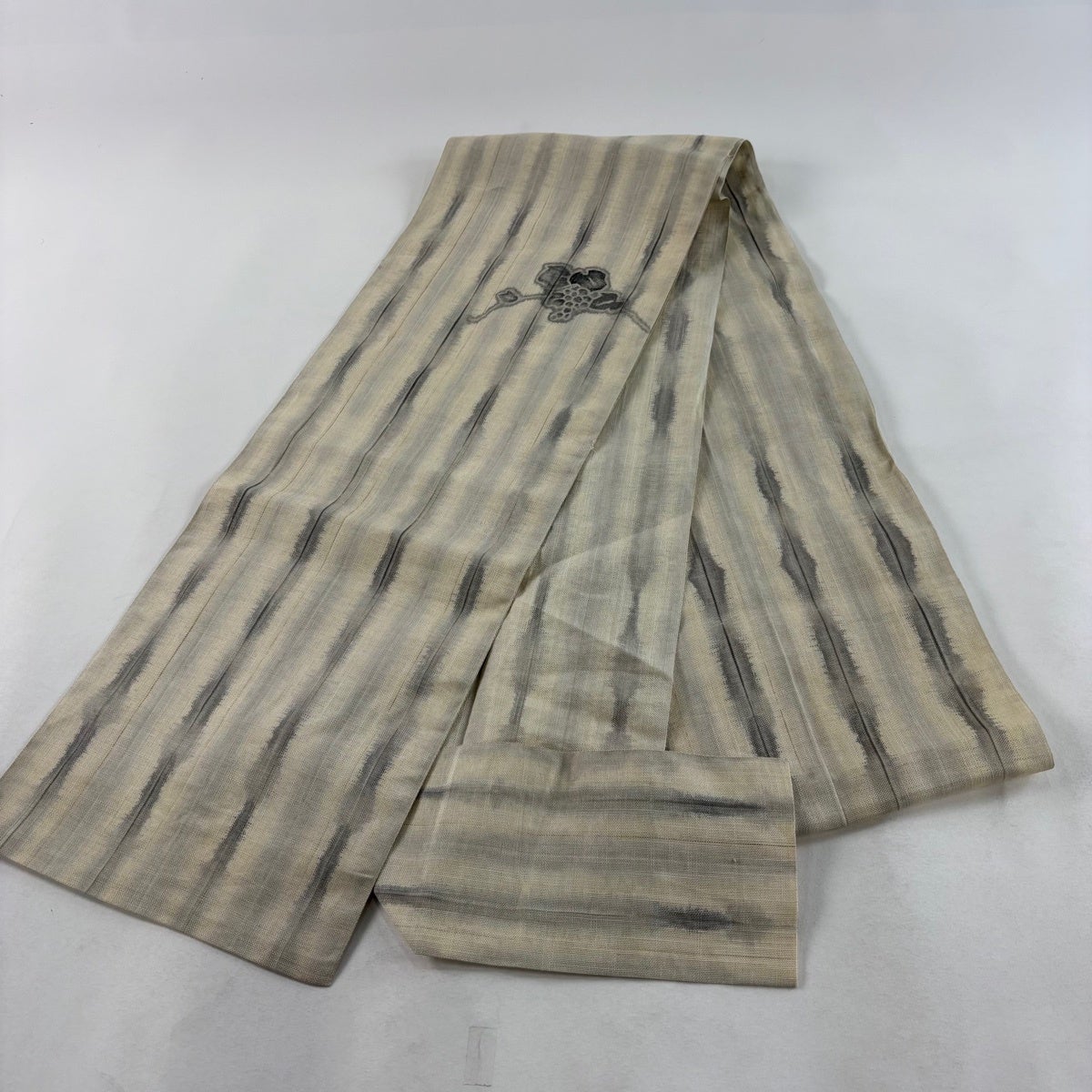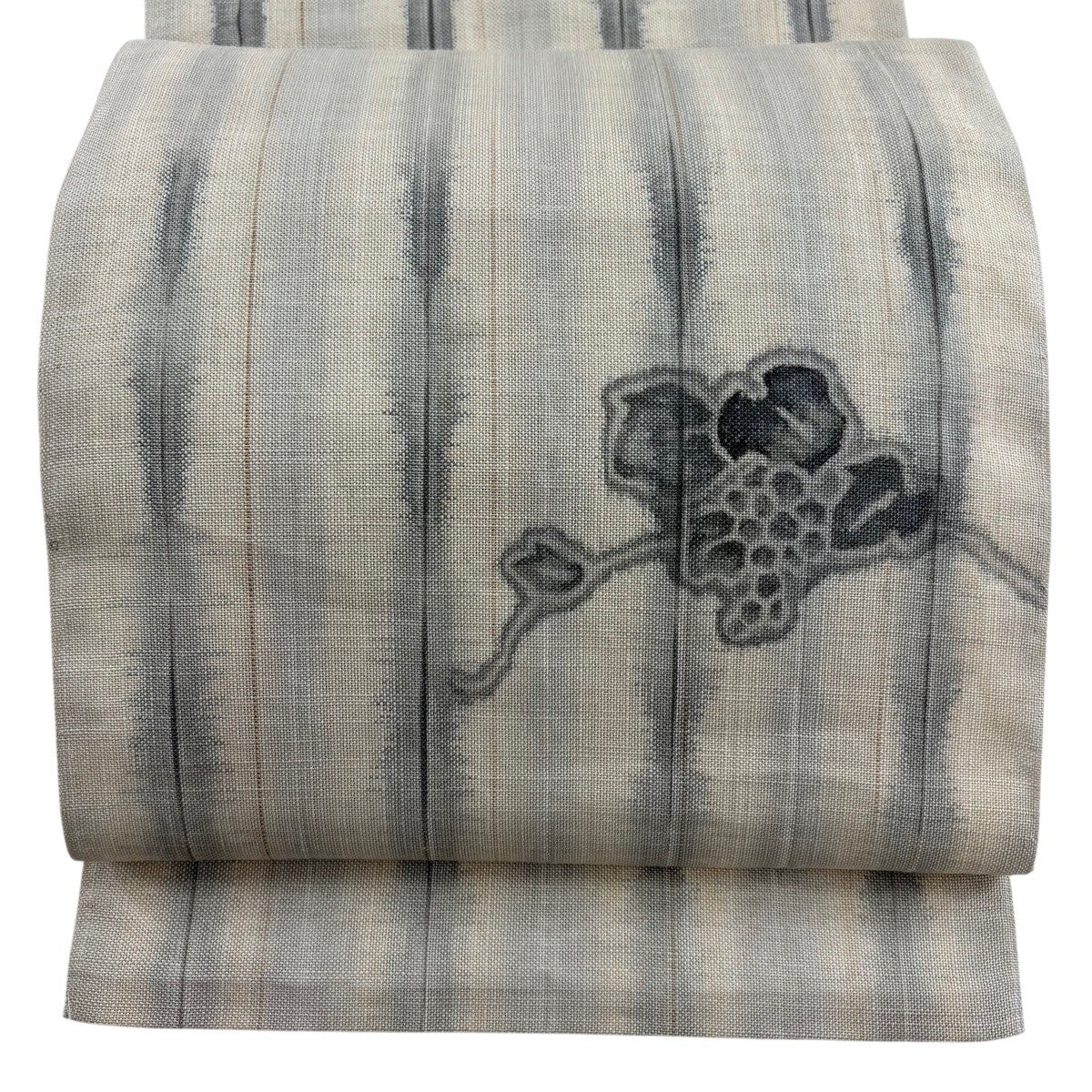 名古屋帯 秀品 夏帯 八寸名古屋帯 松葉仕立て 葡萄唐草 ベージュ 正絹
