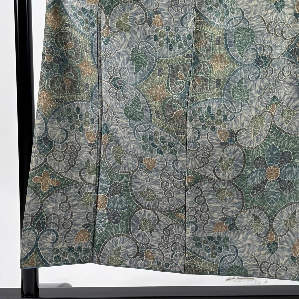 小紋 身丈155cm 裄丈65cm M 袷 紬地 証紙あり 葡萄唐草 灰緑 正絹 秀品