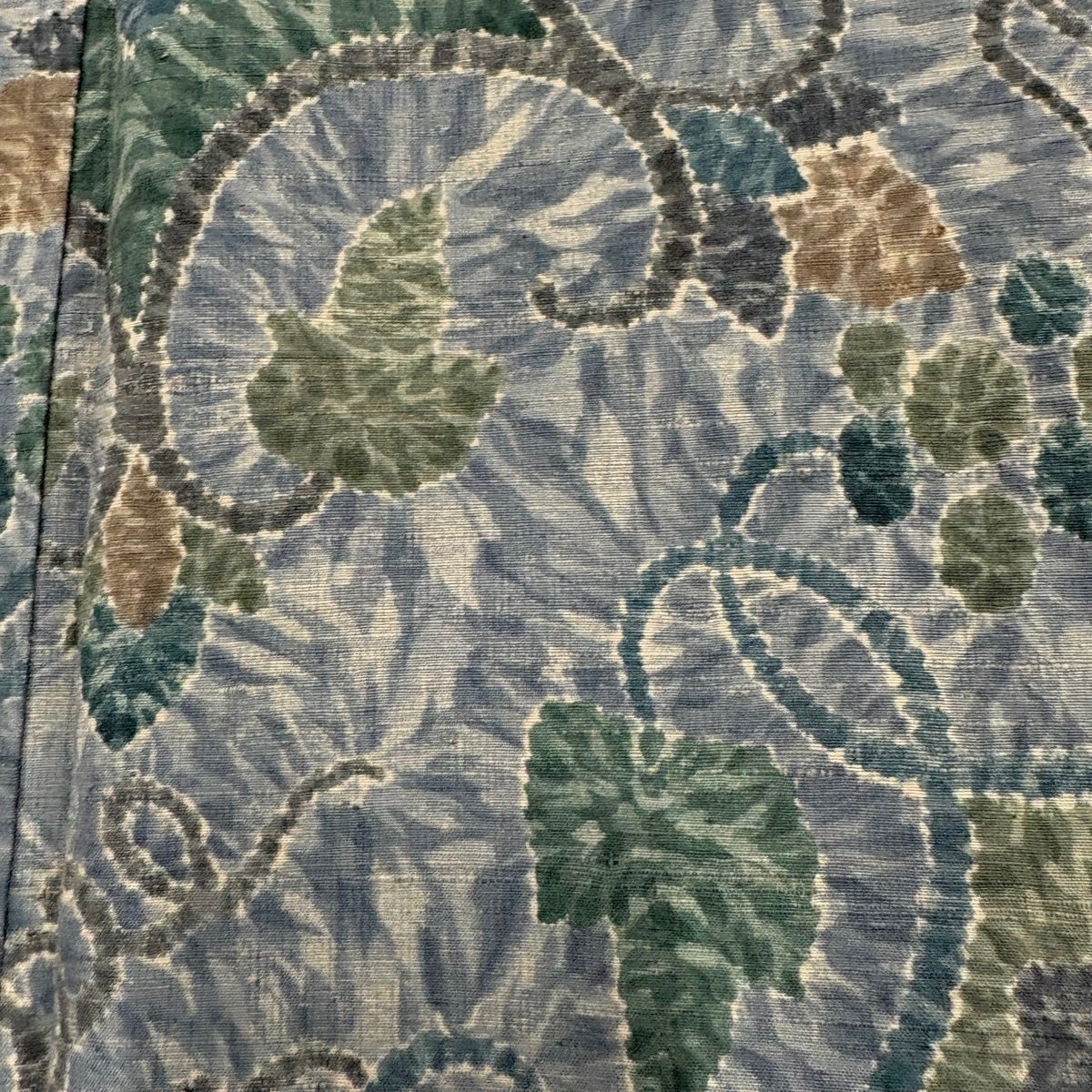 【美品】 袋帯 名品 落款あり 証紙あり 紋屋五左衛門 葡萄唐草 箔 青灰色 六通 正絹