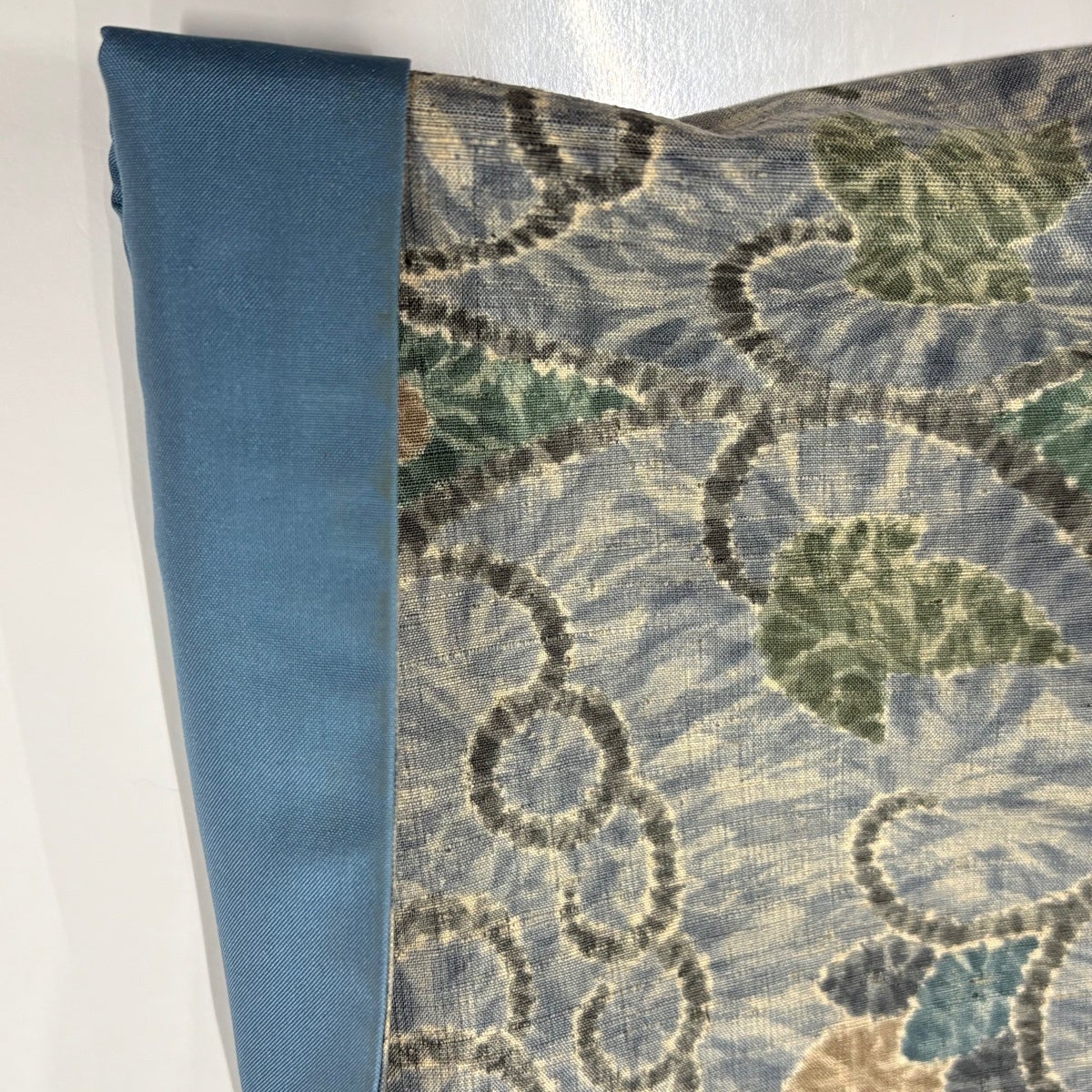 【美品】 袋帯 逸品 国選定阿波藍染天然灰汁健 葡萄唐草 草花 刺繍 銀糸 黒 六通 正絹
