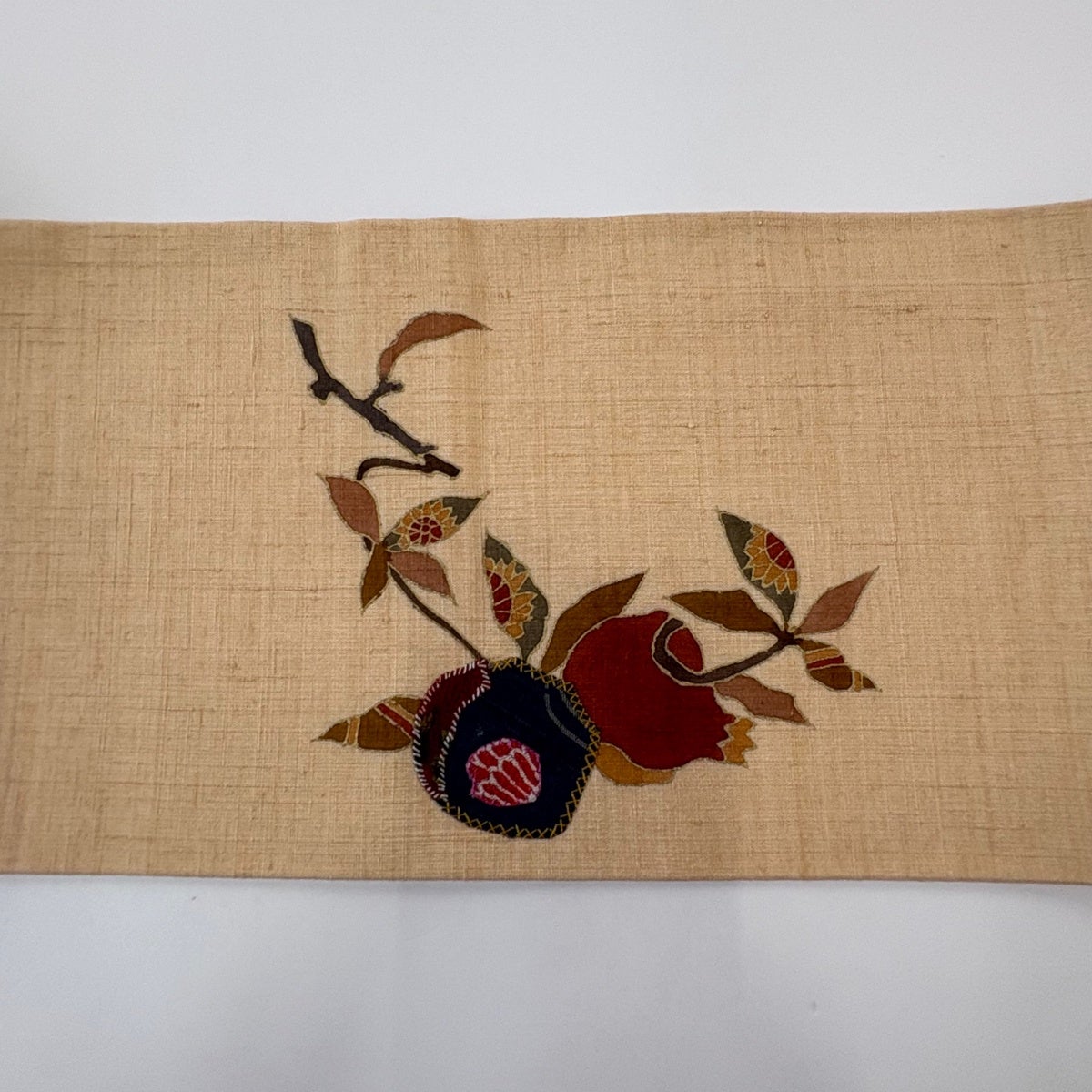 【美品】 袋帯 名品 椿 桔梗 金銀糸 箔 薄オレンジ お太鼓柄 正絹