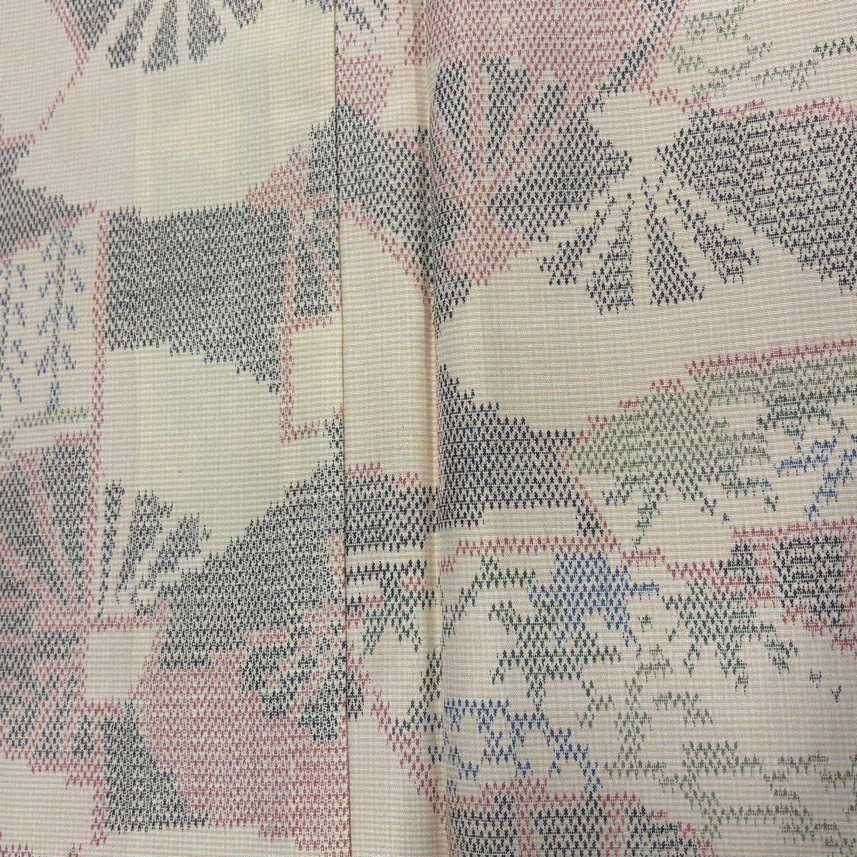 小紋 身丈158cm 裄丈67cm M 袷 草花 菱 絞り 地紋起こし 薄オレンジ 正絹 秀品