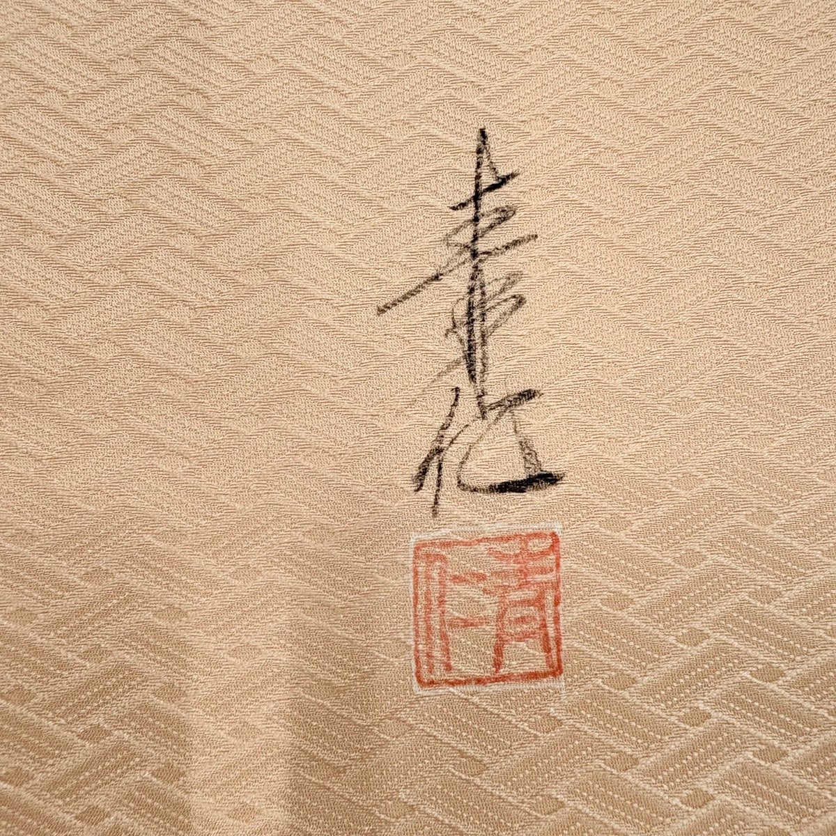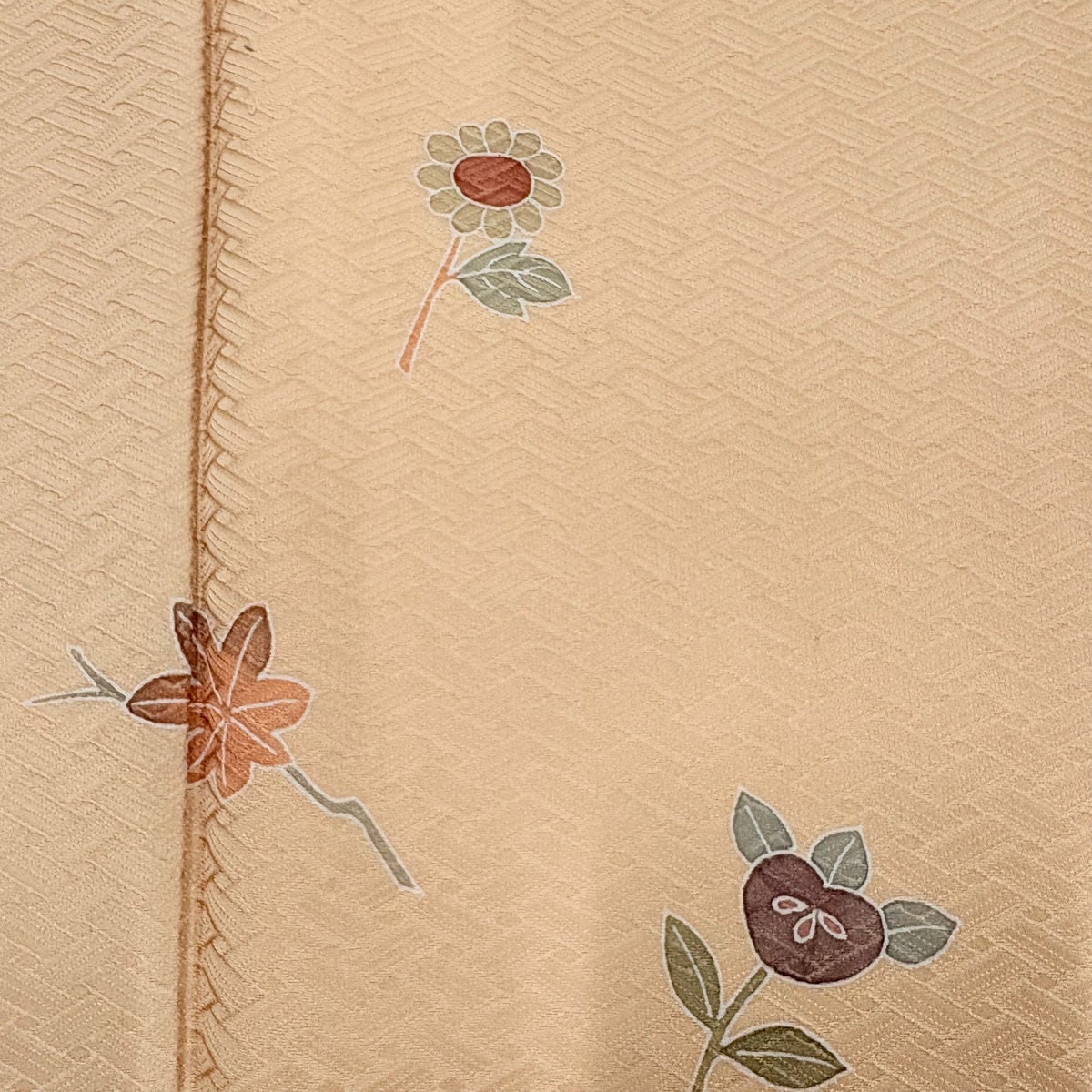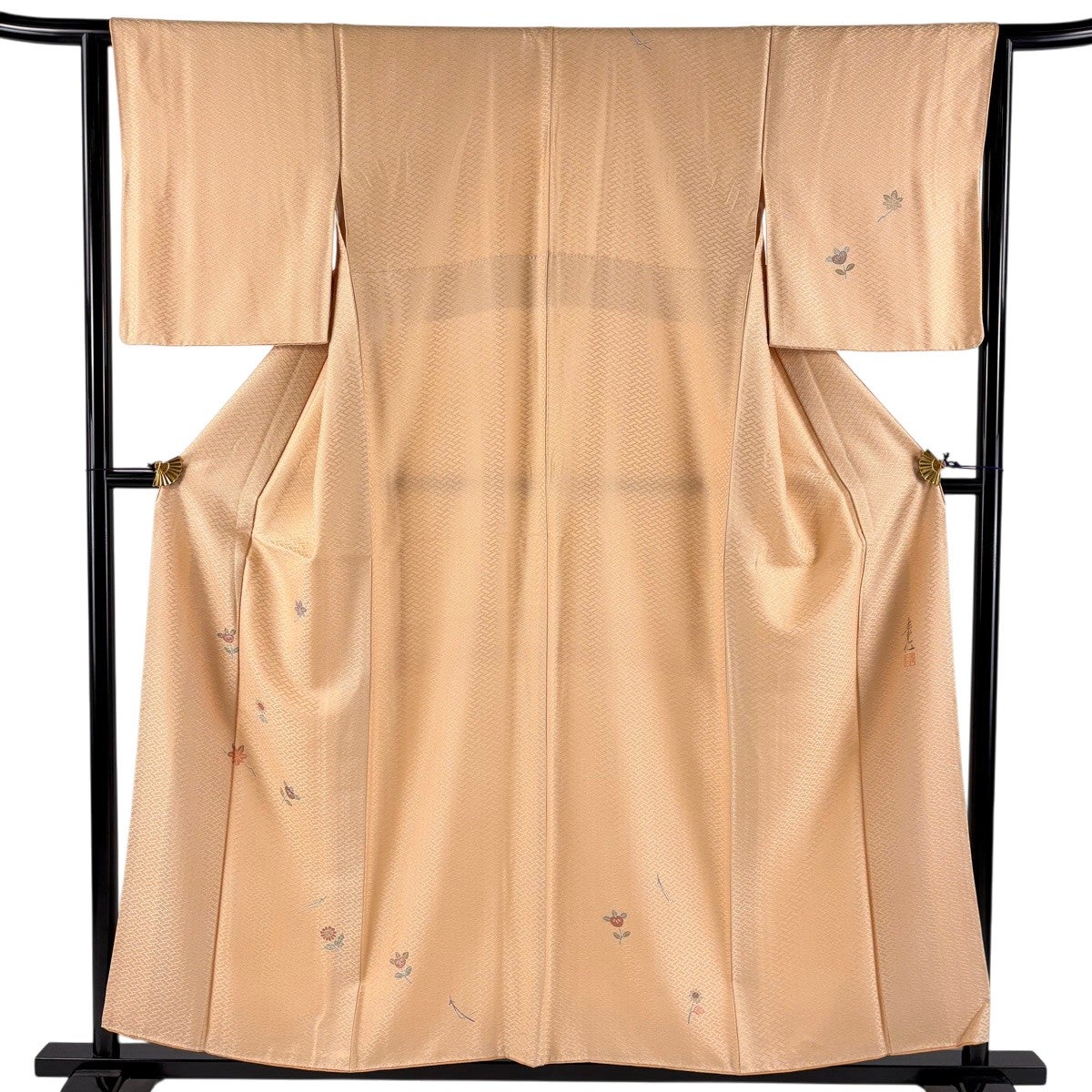 付下げ 身丈156cm 裄丈63.5cm S 袷 浅井青仁 落款あり 草花 地紋 薄オレンジ 正絹 秀品