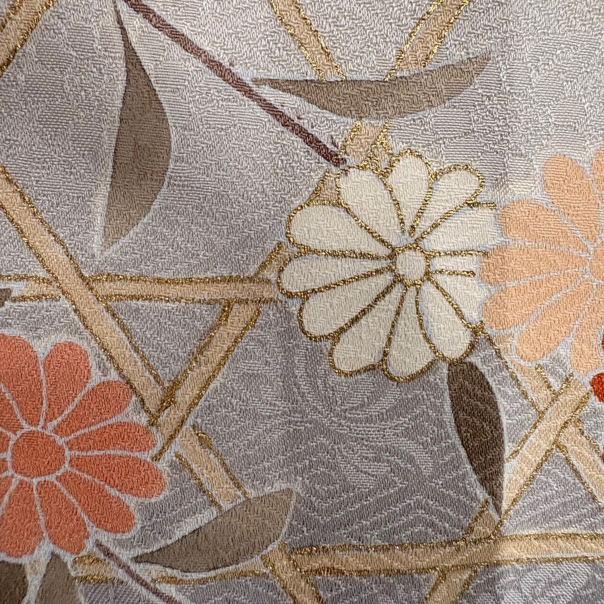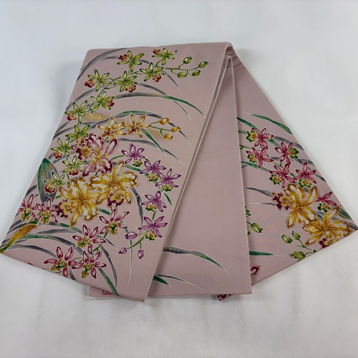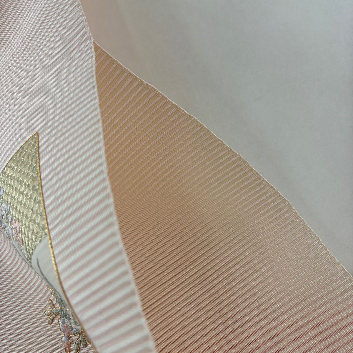 50%OFF 袋帯 逸品 落款あり 皆川千恵子 草花 金銀糸 金彩 薄ピンク お太鼓柄 正絹 K50