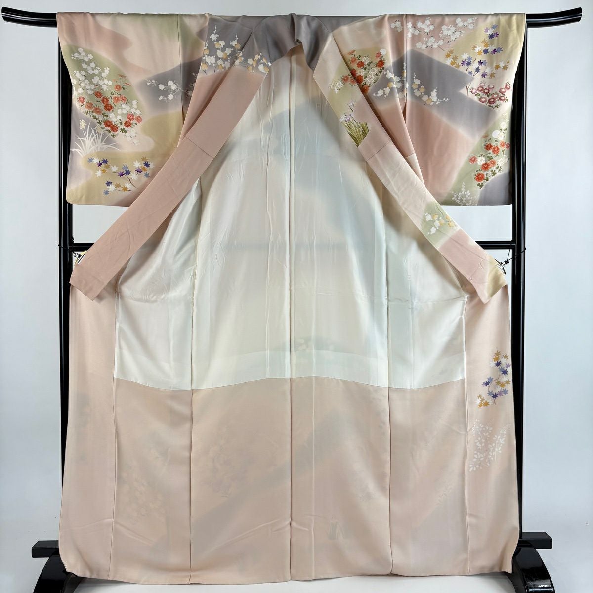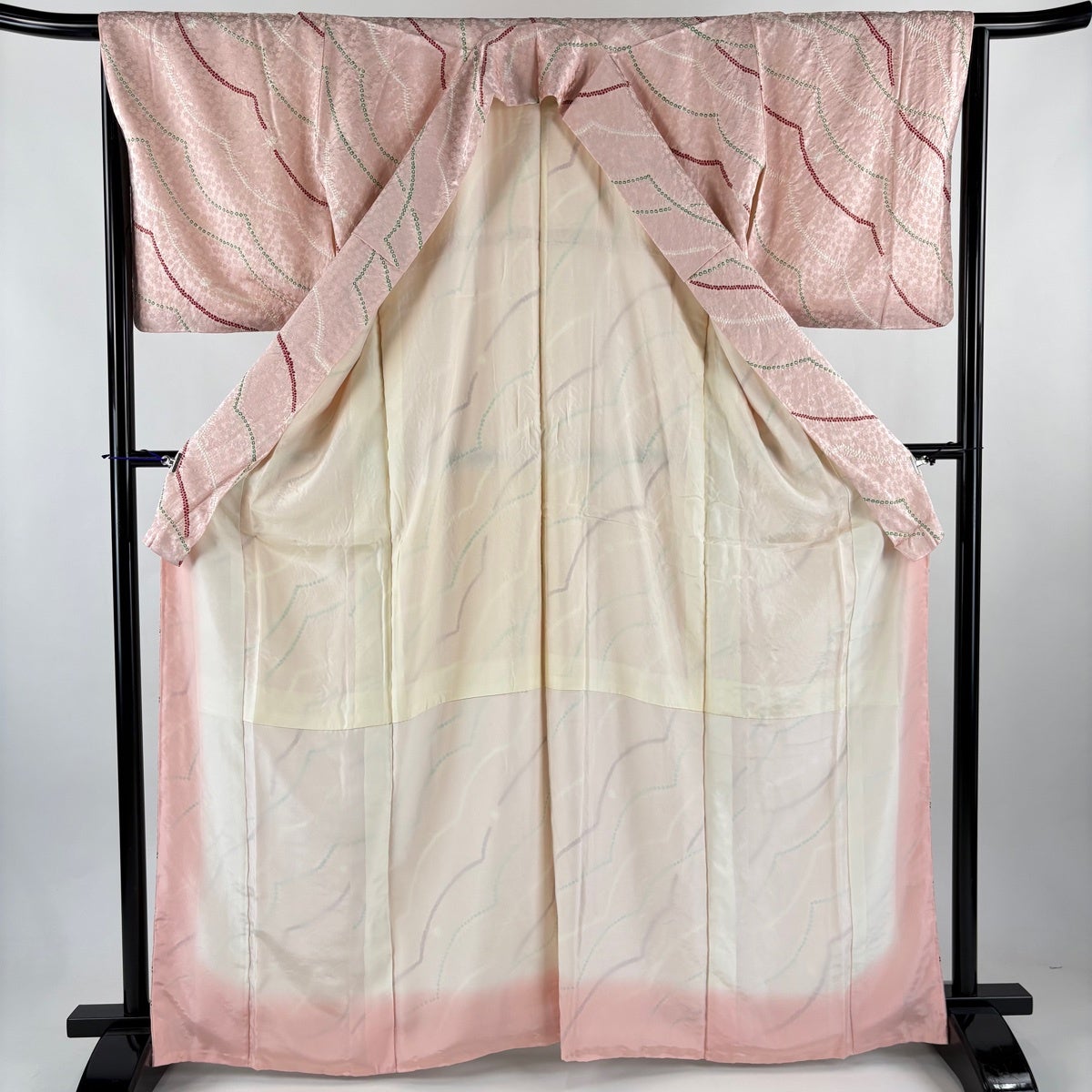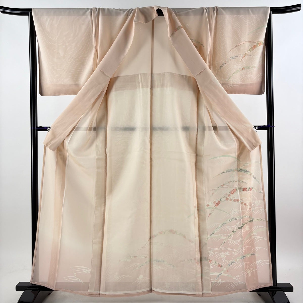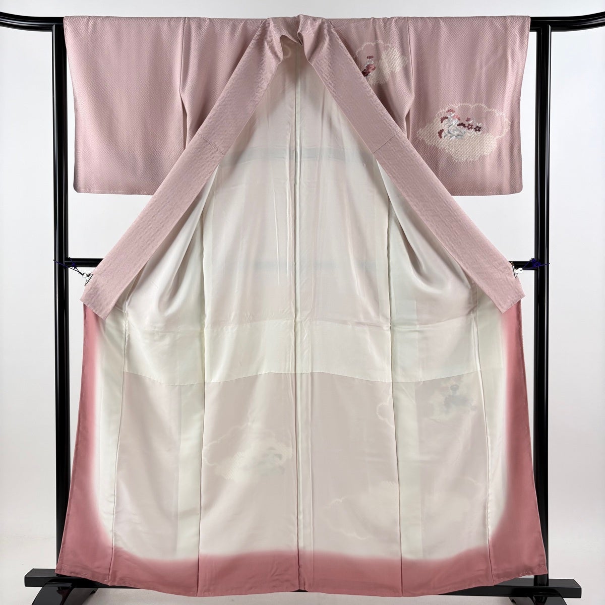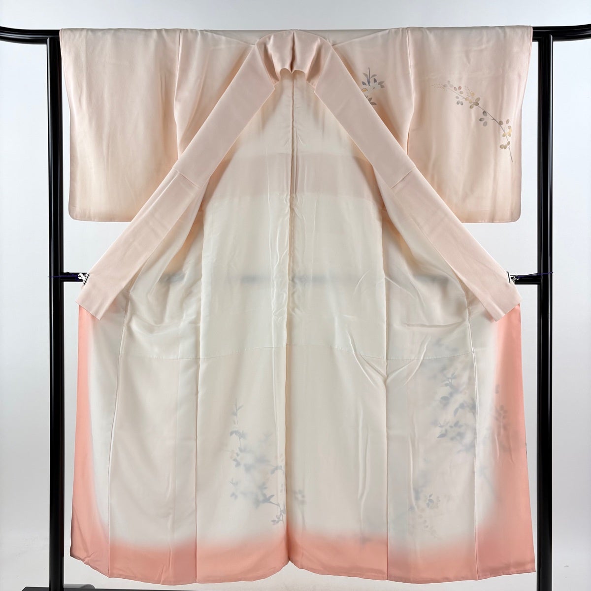 【美品】 付下げ 身丈154.5cm 裄丈62.5cm S 袷 御所車 草花 ぼかし 薄ピンク 正絹 優品