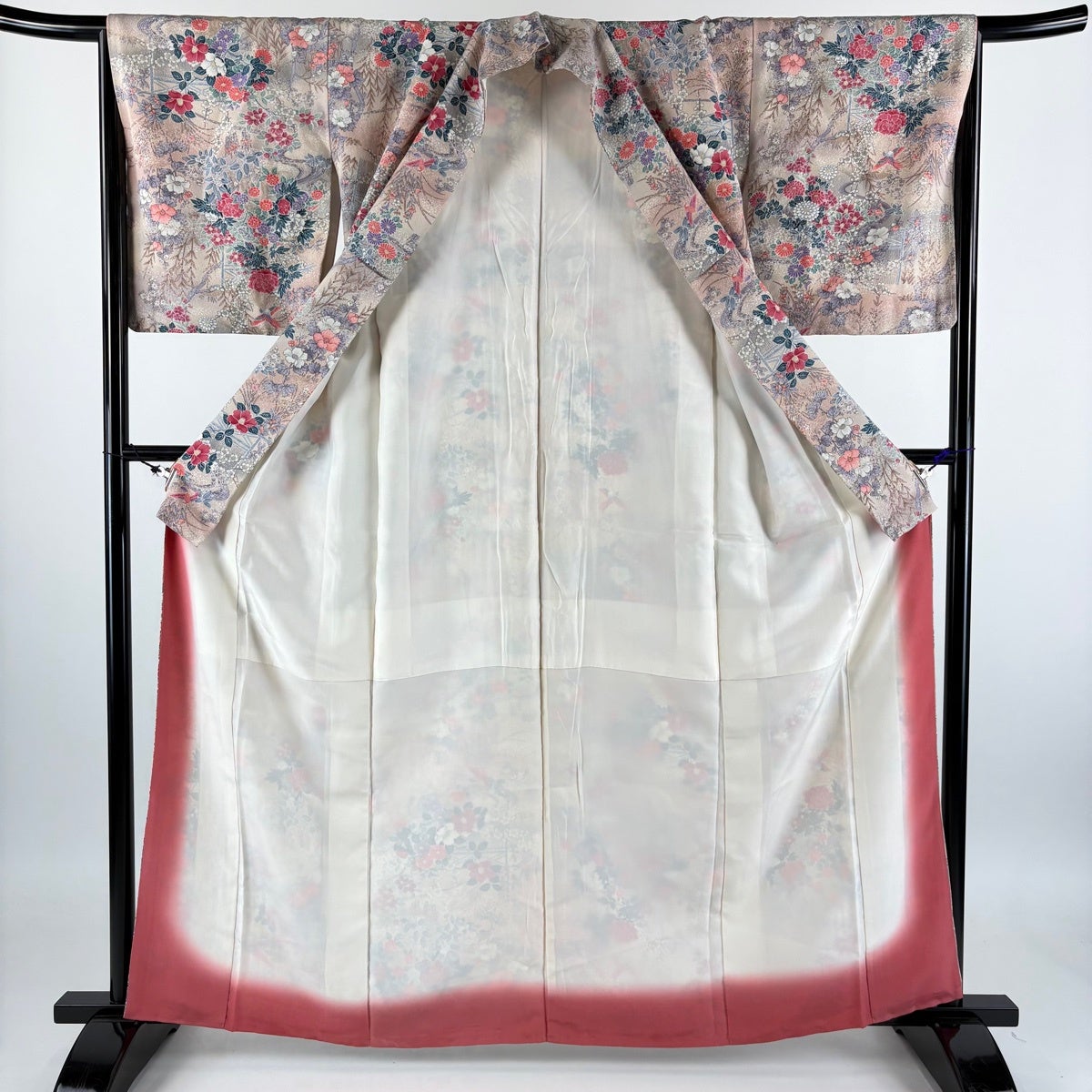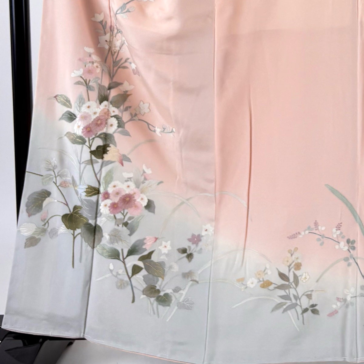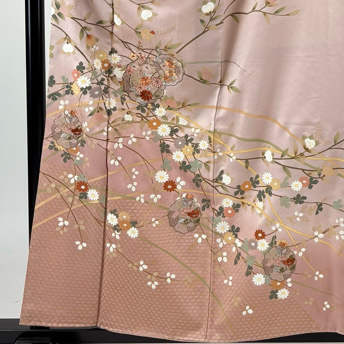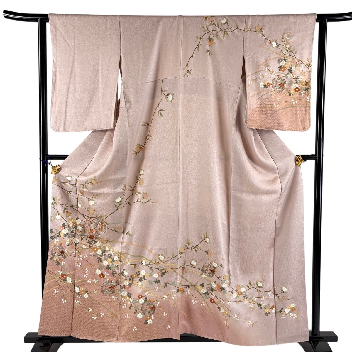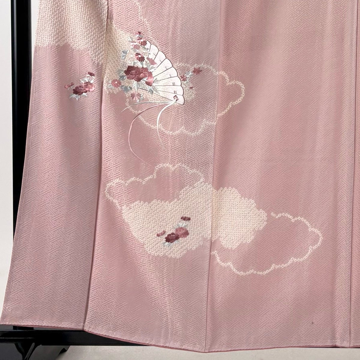 【美品】 付下げ 身丈154.5cm 裄丈62.5cm S 袷 御所車 草花 ぼかし 薄ピンク 正絹 優品