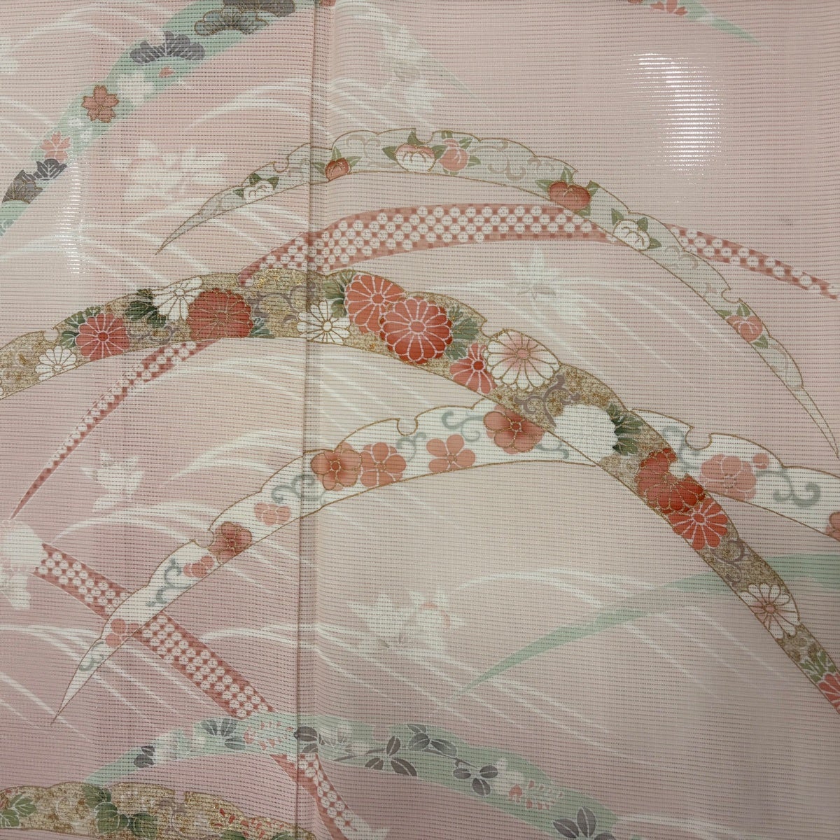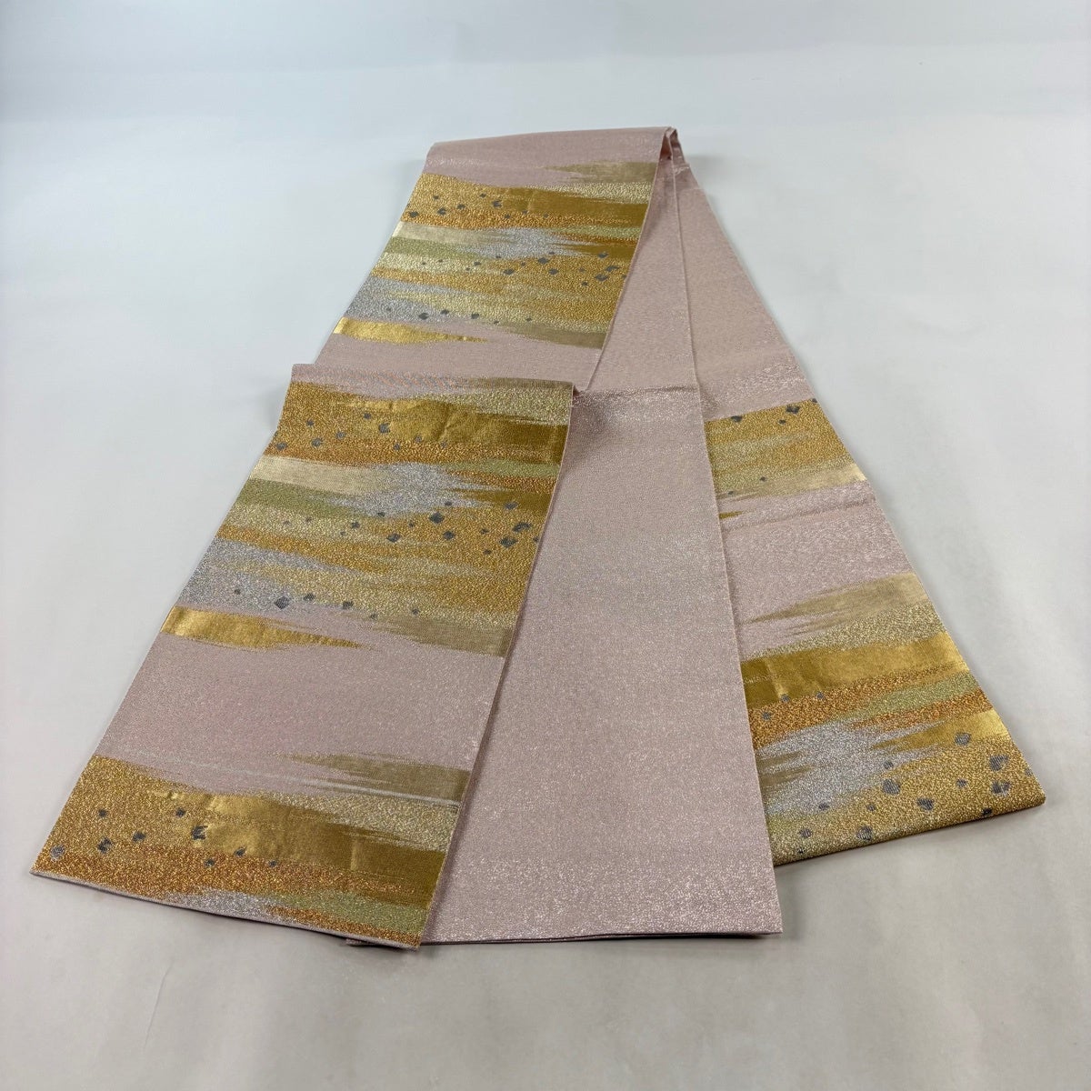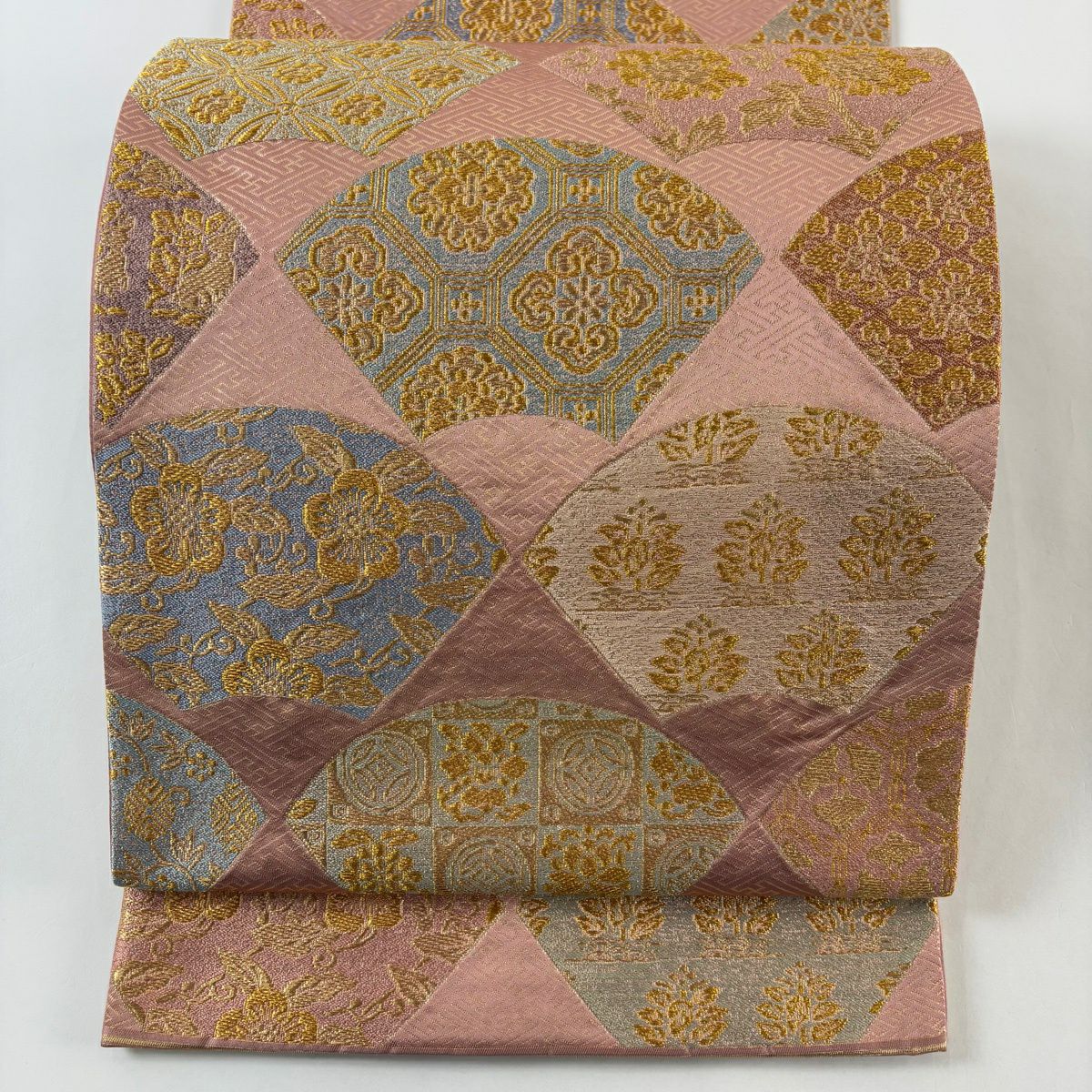 【最終価格】 70%OFF 【美品】 名古屋帯 優品 扇 草花 銀糸 唐織 薄ピンク 正絹 K70