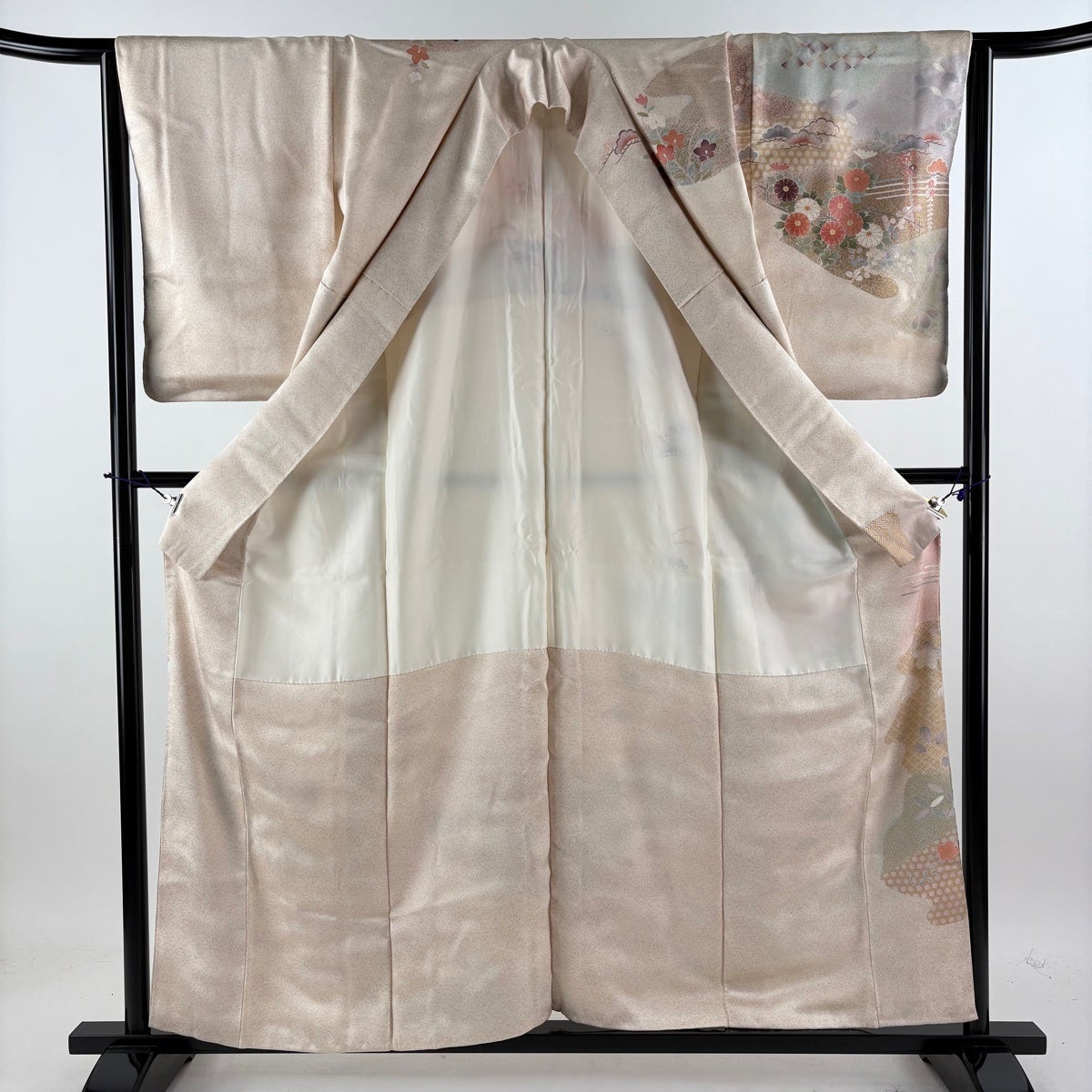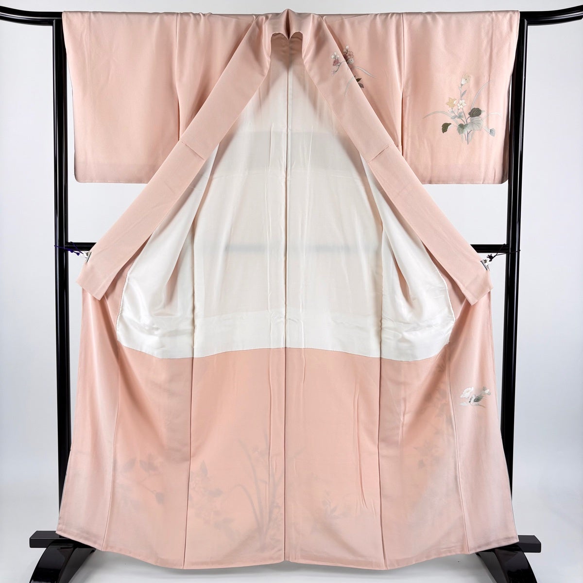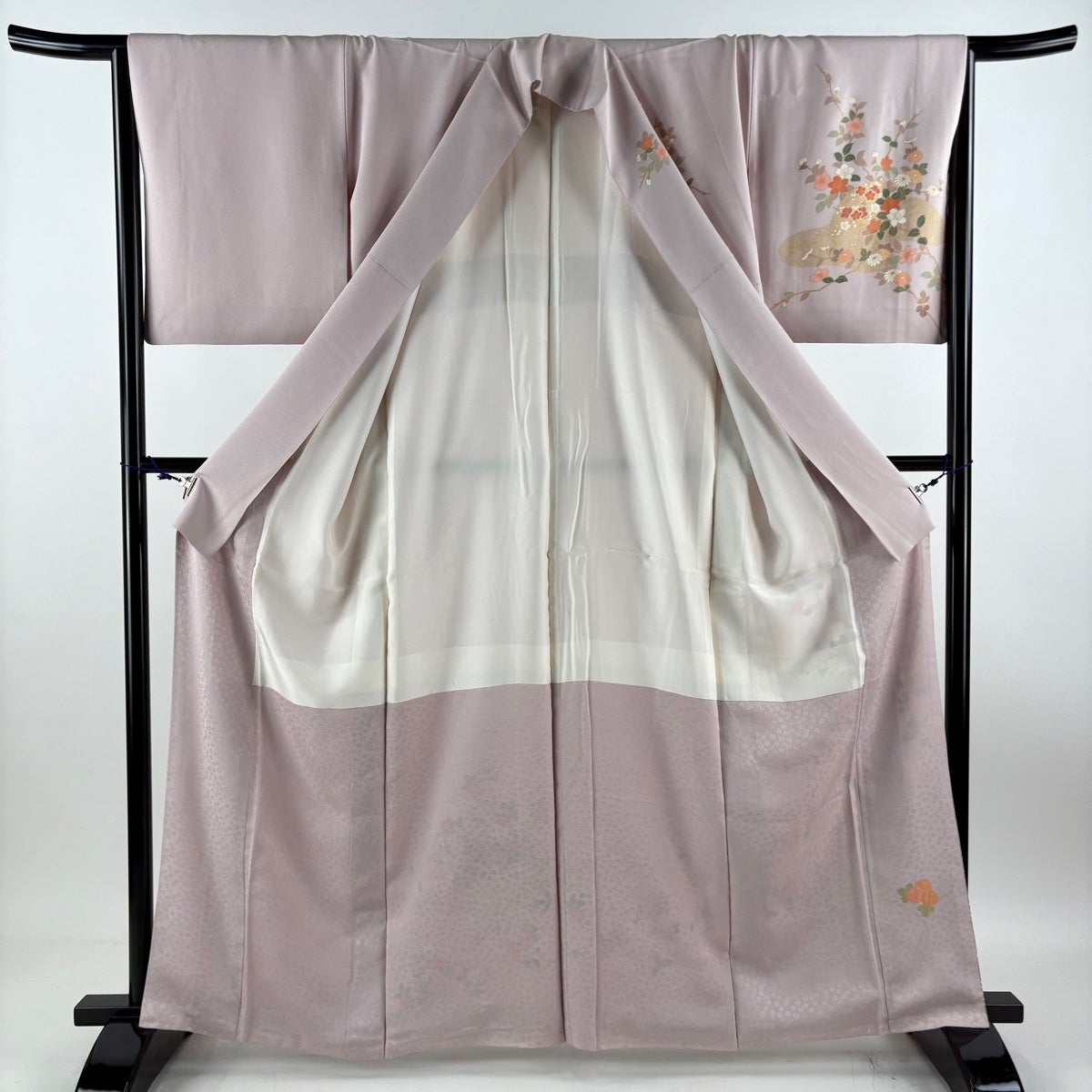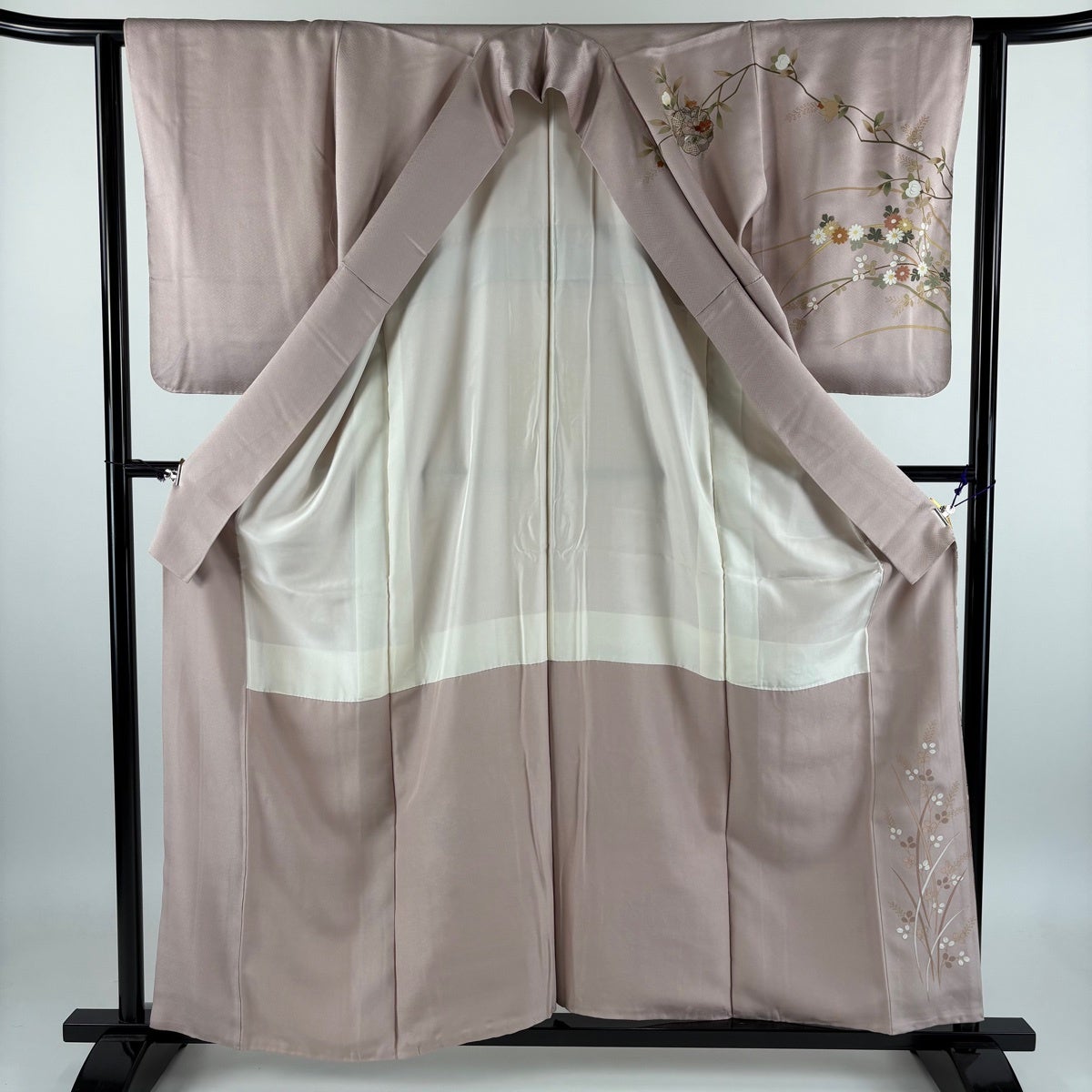 付下げ 身丈150.5cm 裄丈62.5cm S 袷 南克治 落款あり 枝花 萩 薄ピンク 正絹 名品
