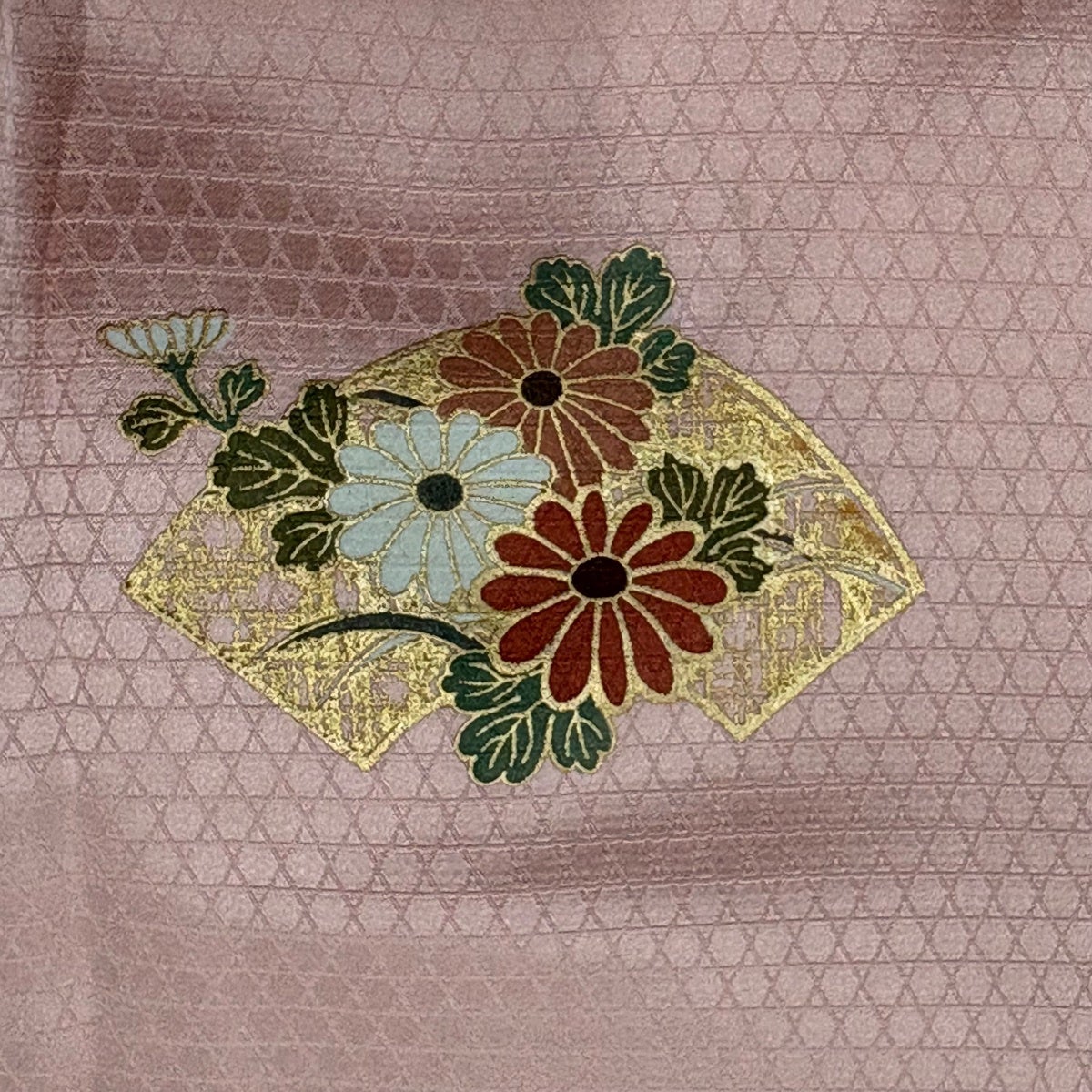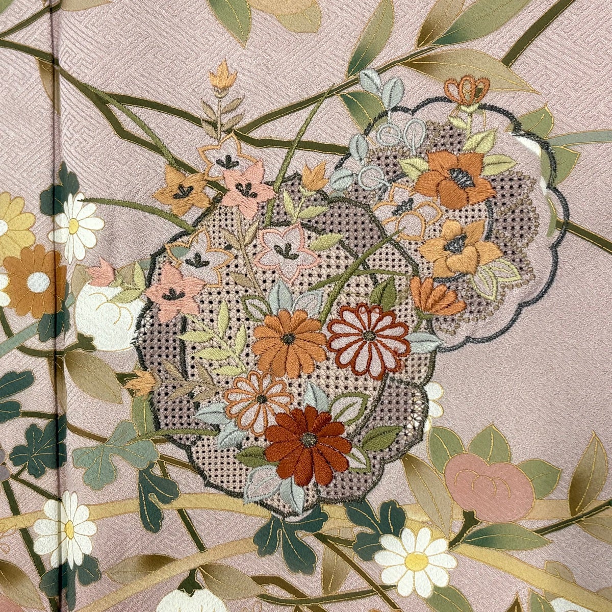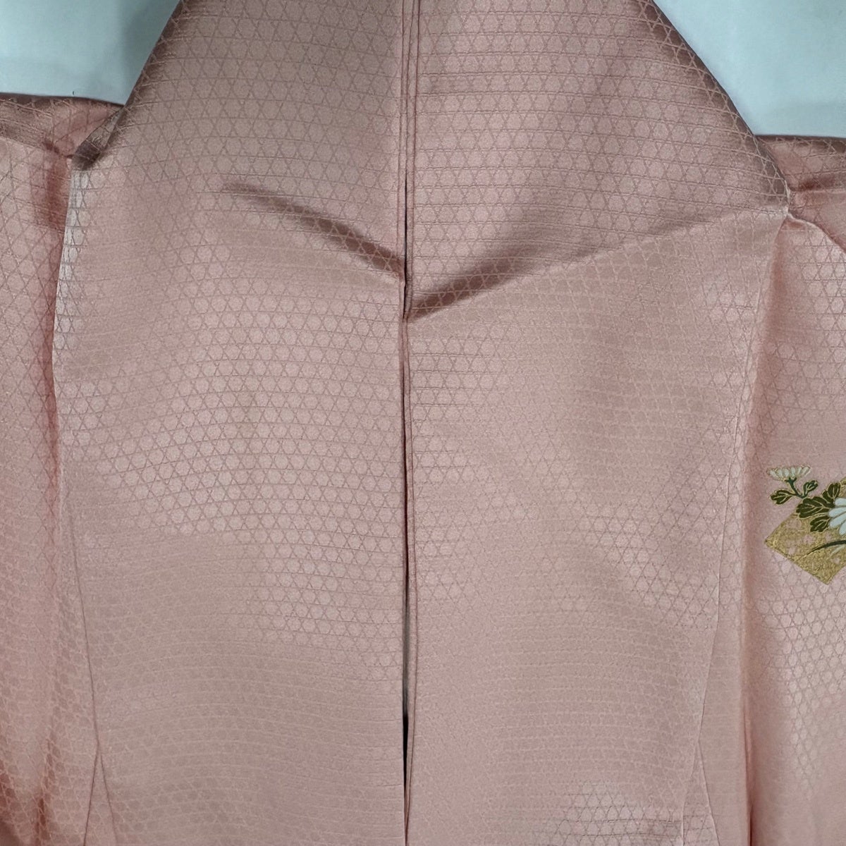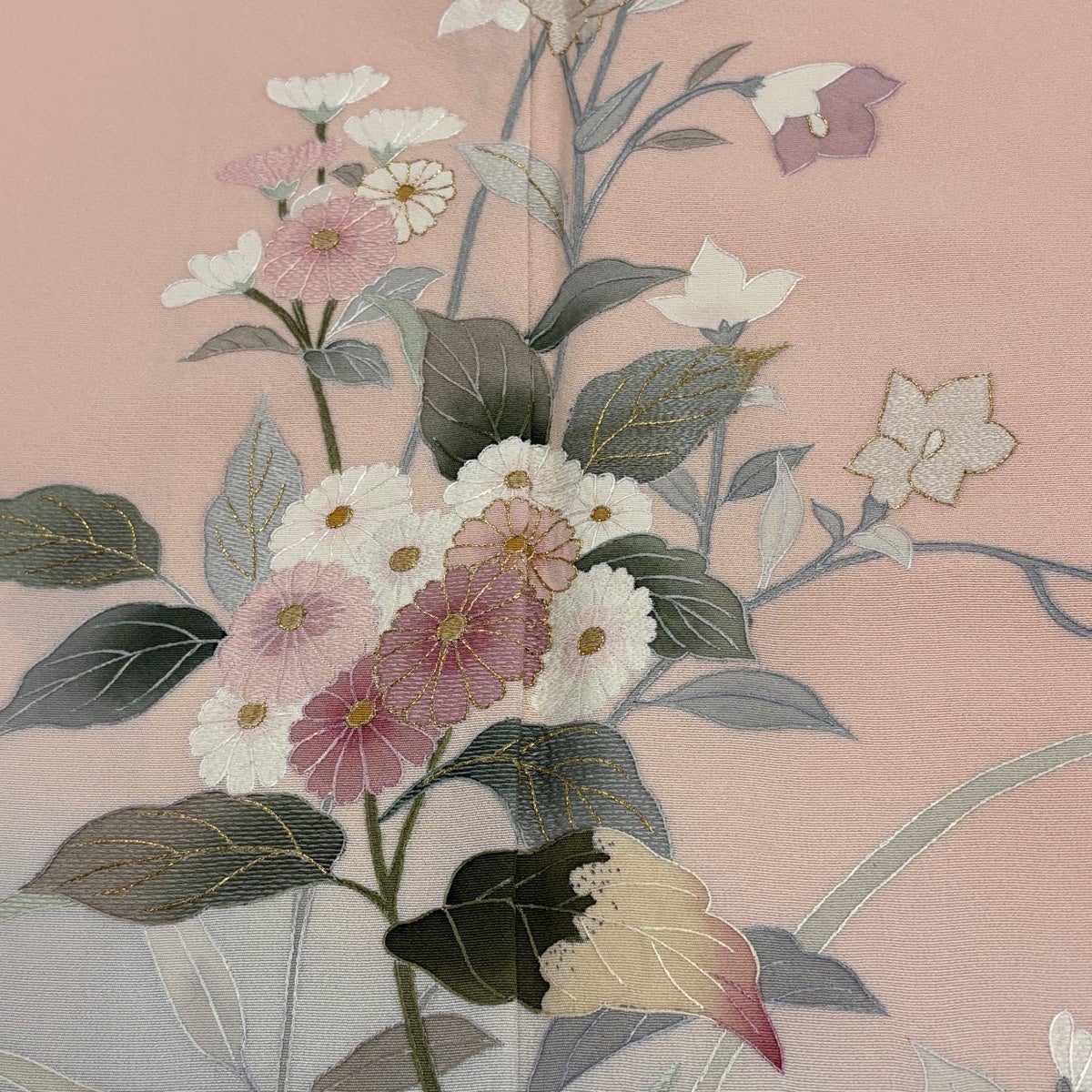 訪問着 身丈158.5cm 裄丈64.5cm M 袷 落款あり 菊 松 金彩 刺繍 薄ピンク 正絹 名品
