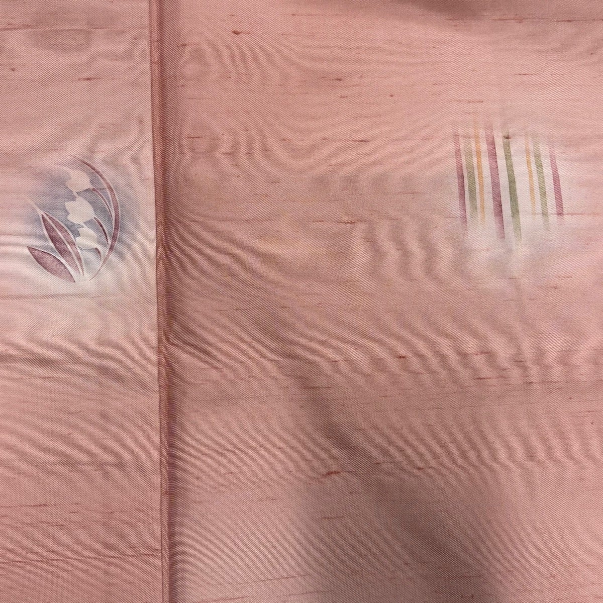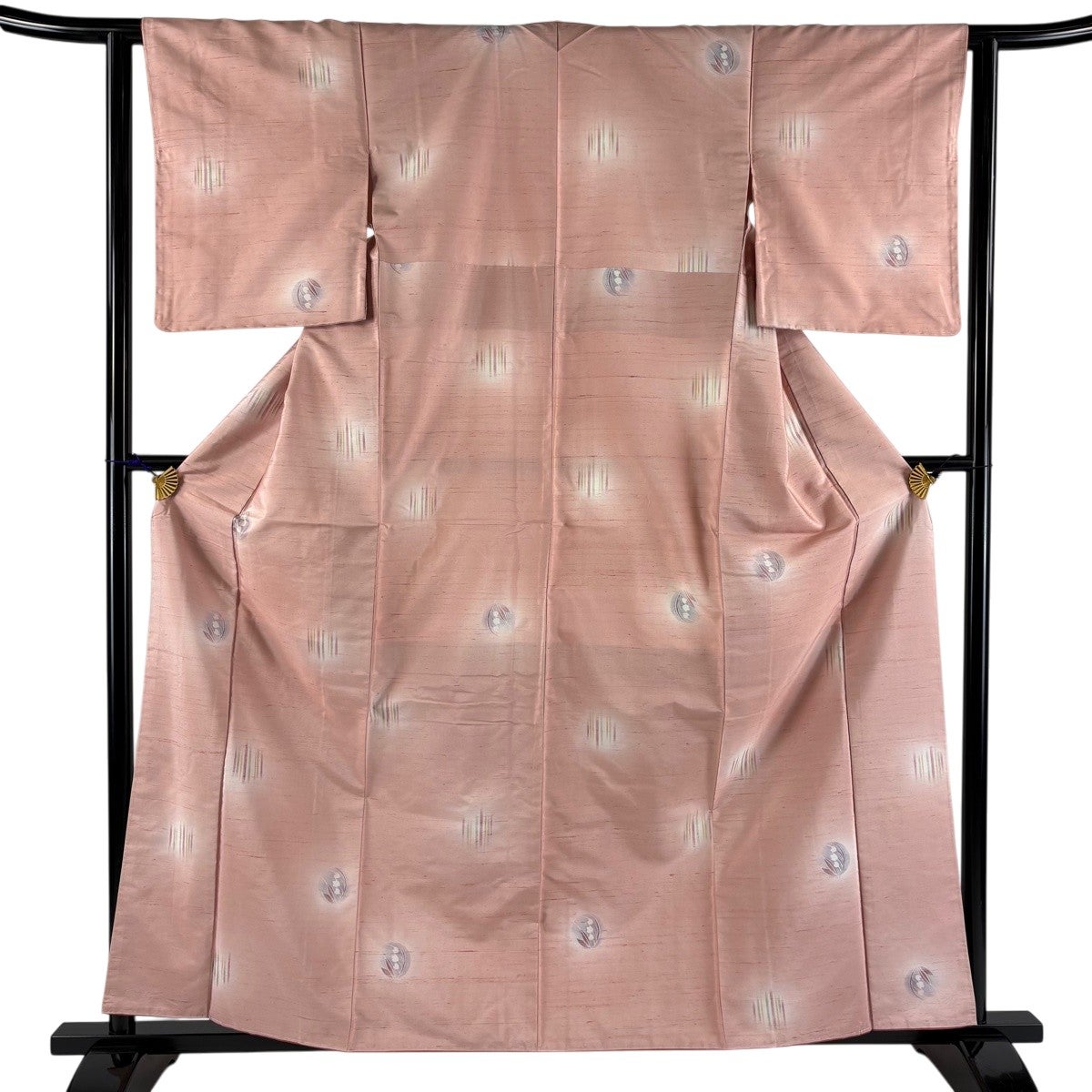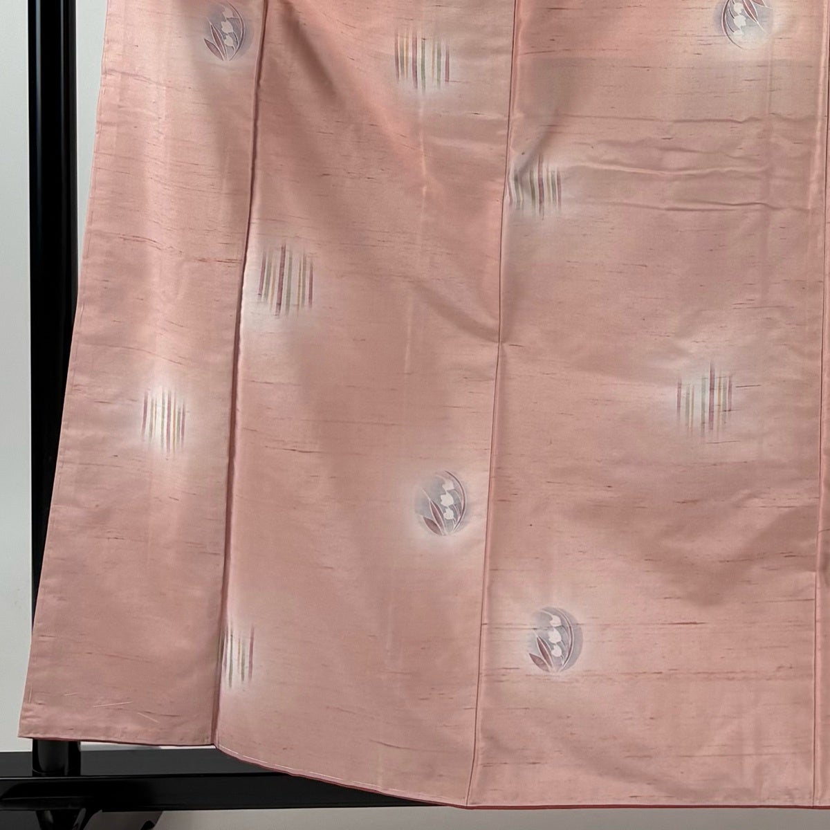小紋 身丈160cm 裄丈61cm S 袷 鬼紬地 証紙あり 草花 縞 ぼかし 薄ピンク 正絹 秀品
