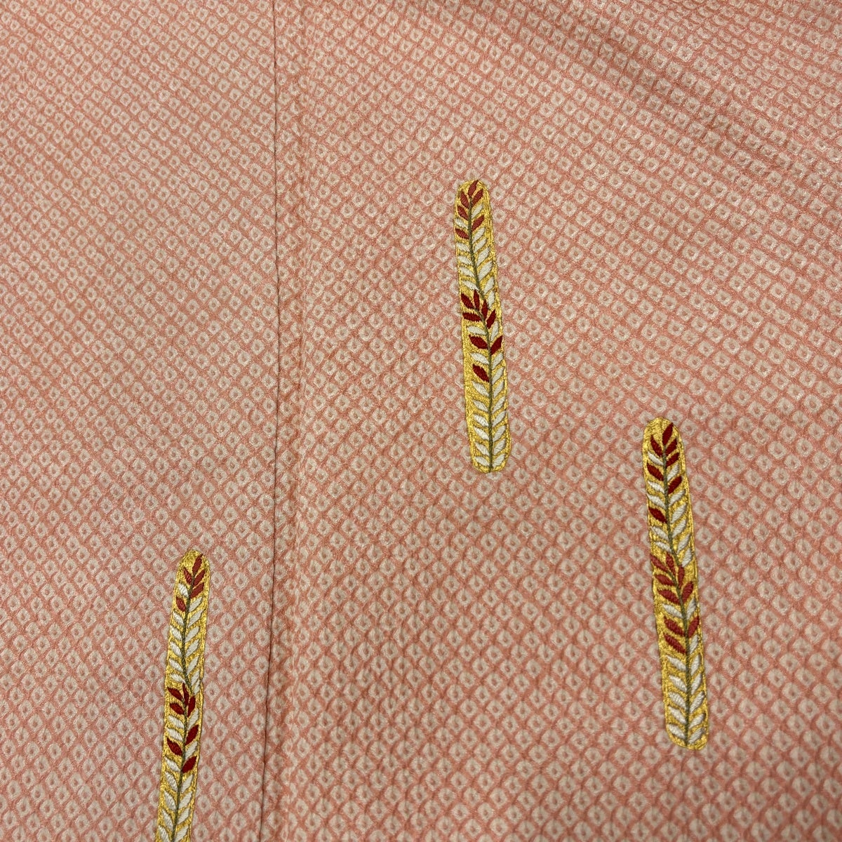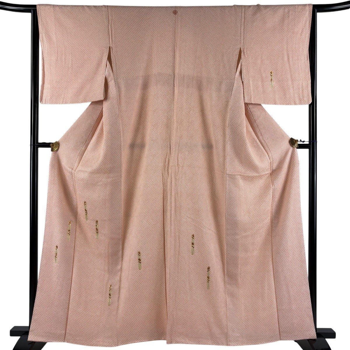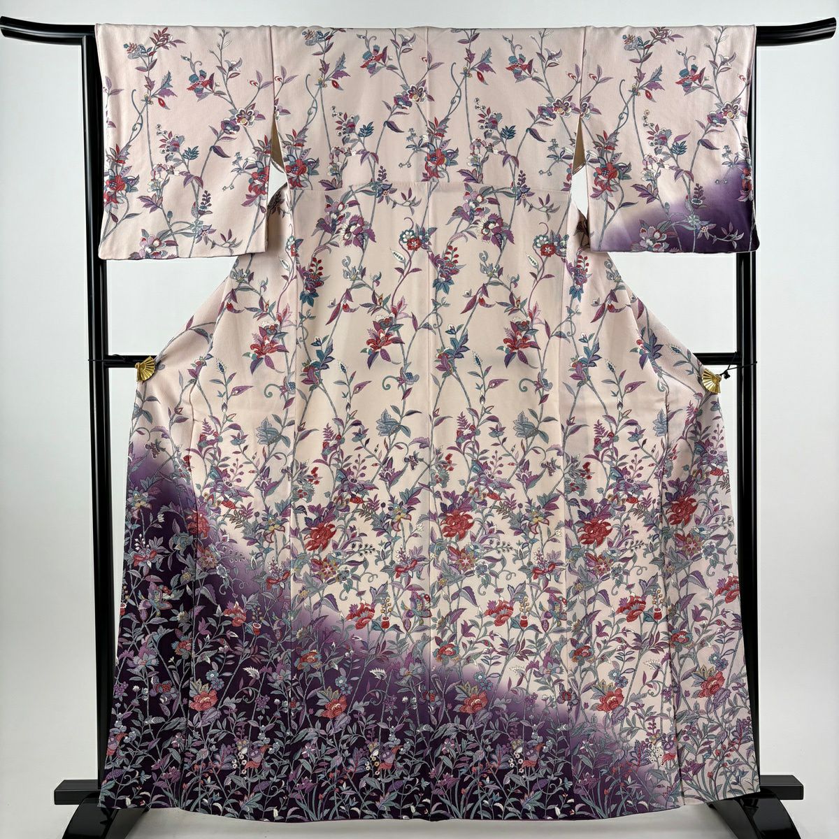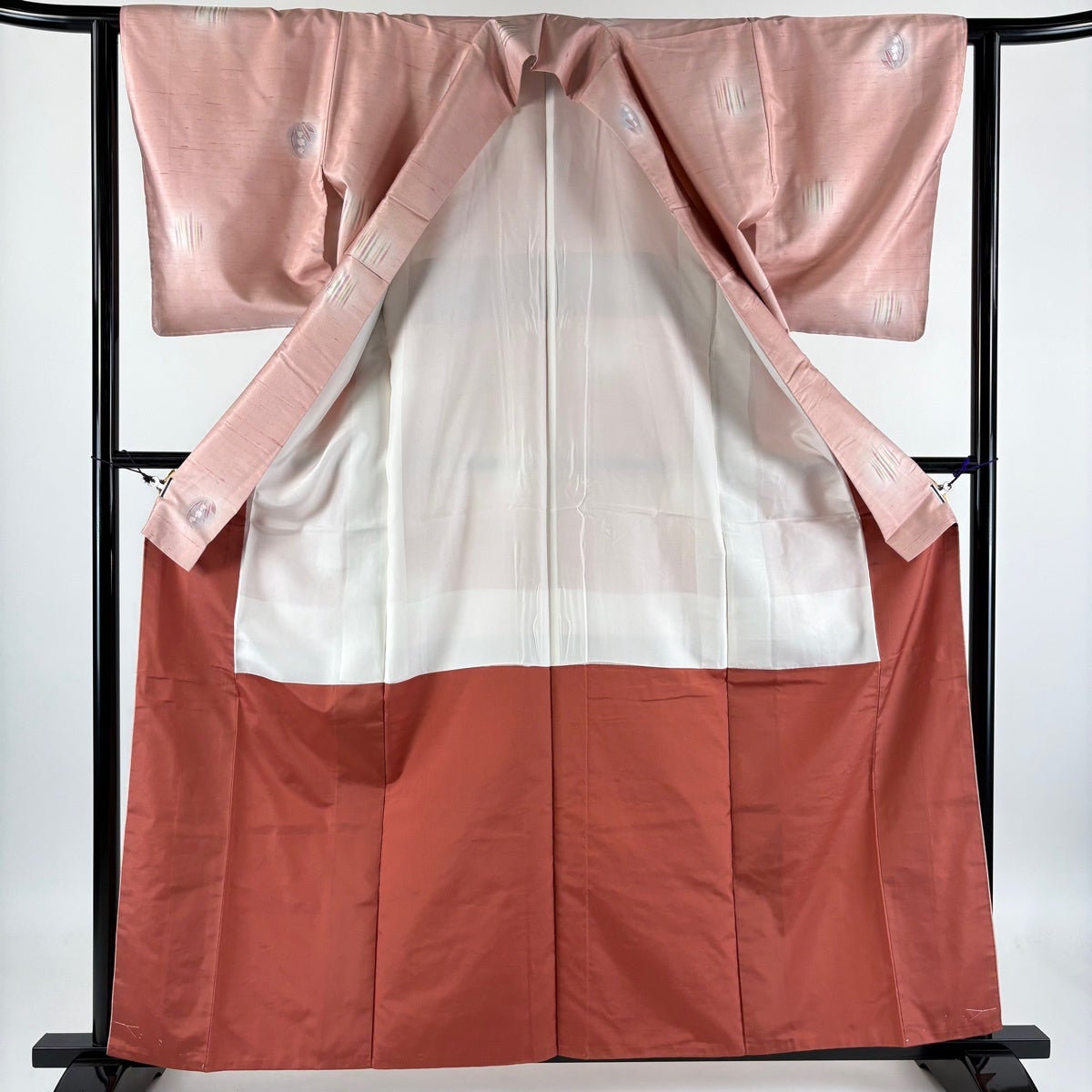 小紋 身丈160cm 裄丈61cm S 袷 鬼紬地 証紙あり 草花 縞 ぼかし 薄ピンク 正絹 秀品
