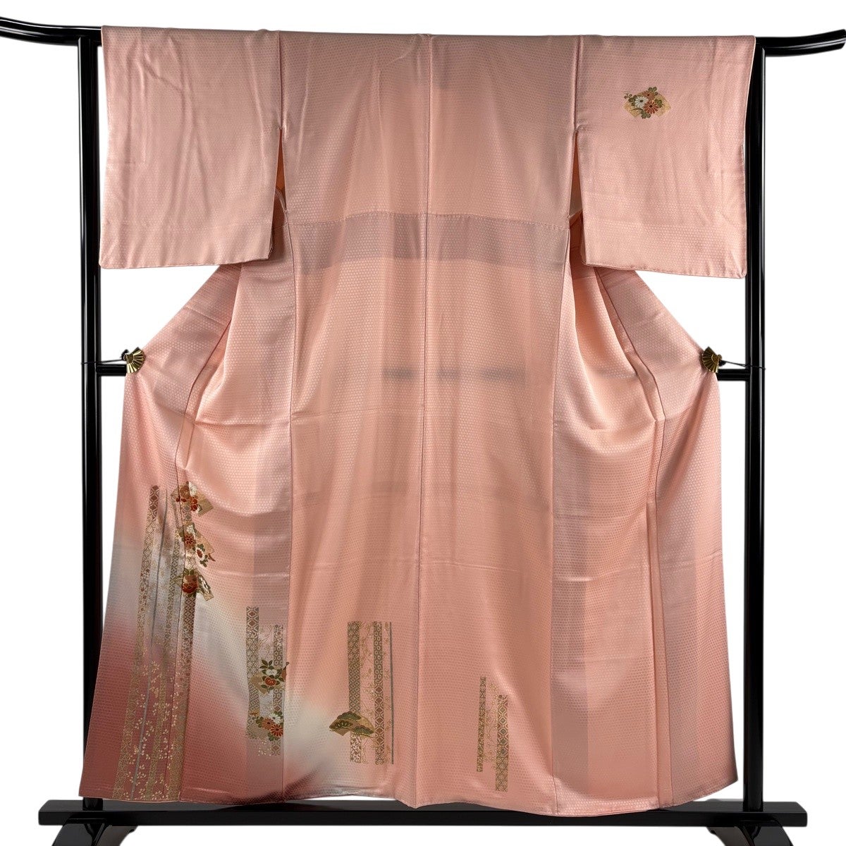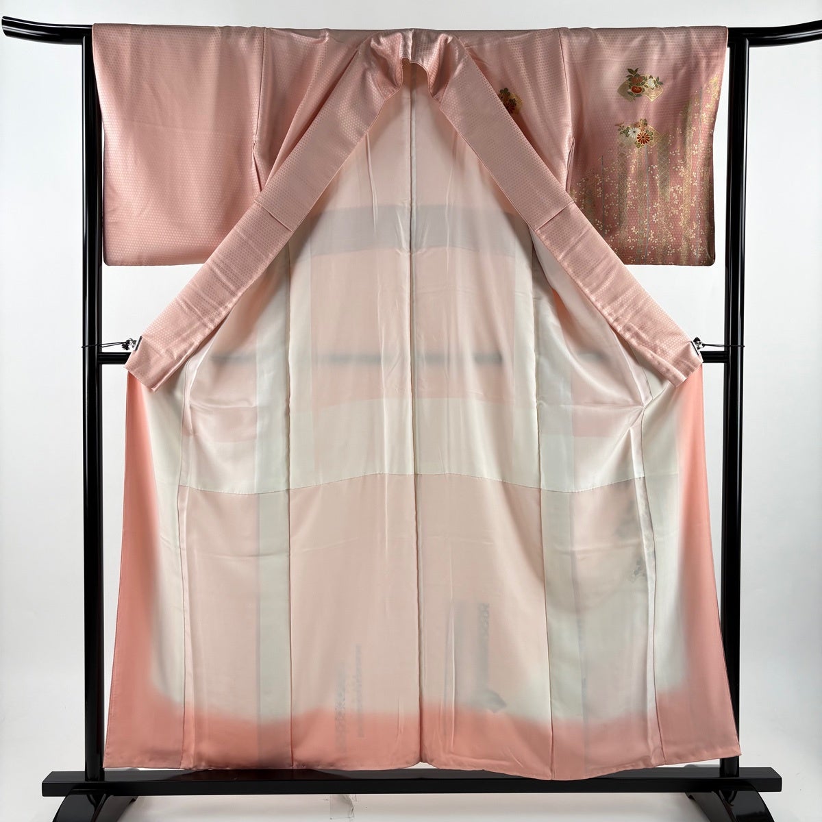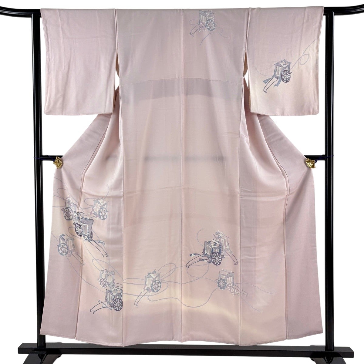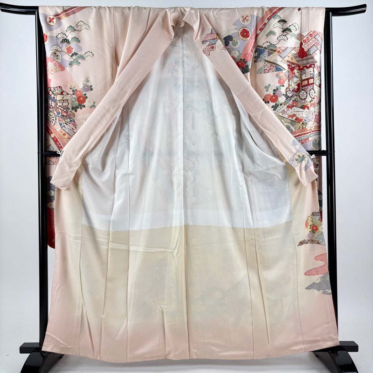 色留袖 身丈167cm 裄丈67cm M 袷 御所車 几帳 金糸 ぼかし 薄ピンク 正絹 秀品 一つ紋