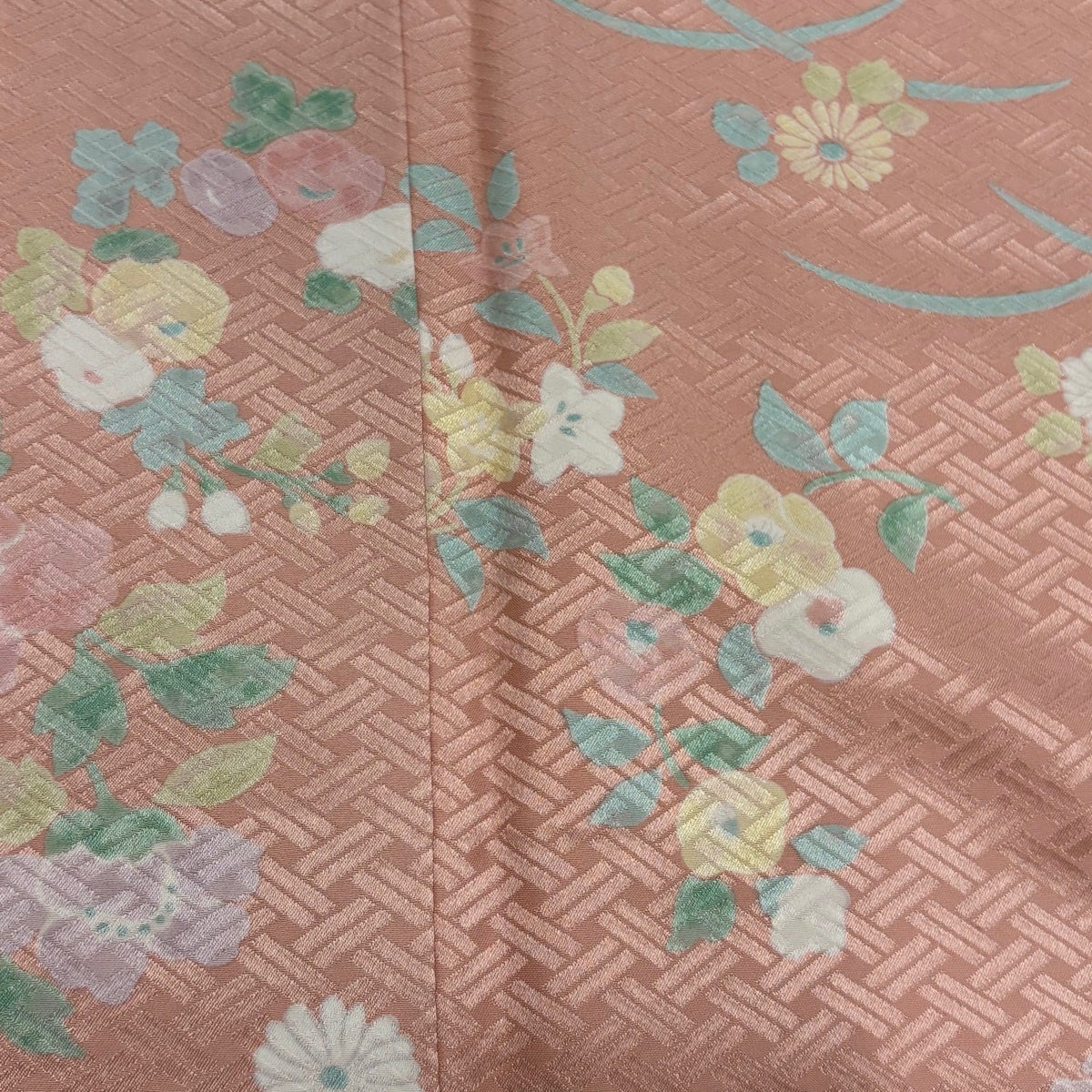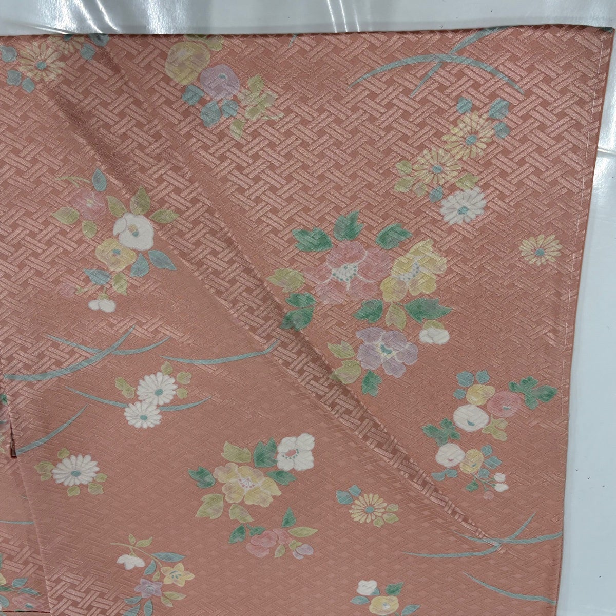 50%OFF 付下げ 身丈162cm 裄丈65cm M 袷 草花 霞 薄ピンク 正絹 秀品 K50