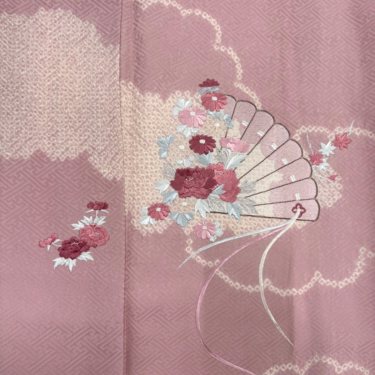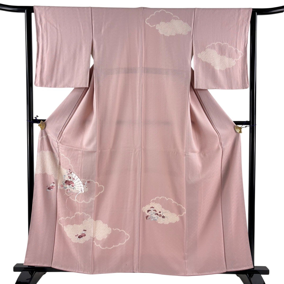 訪問着 身丈157.5cm 裄丈64cm M 袷 滝泰 落款あり 雲文 辻が花柄 薄ピンク 正絹 秀品