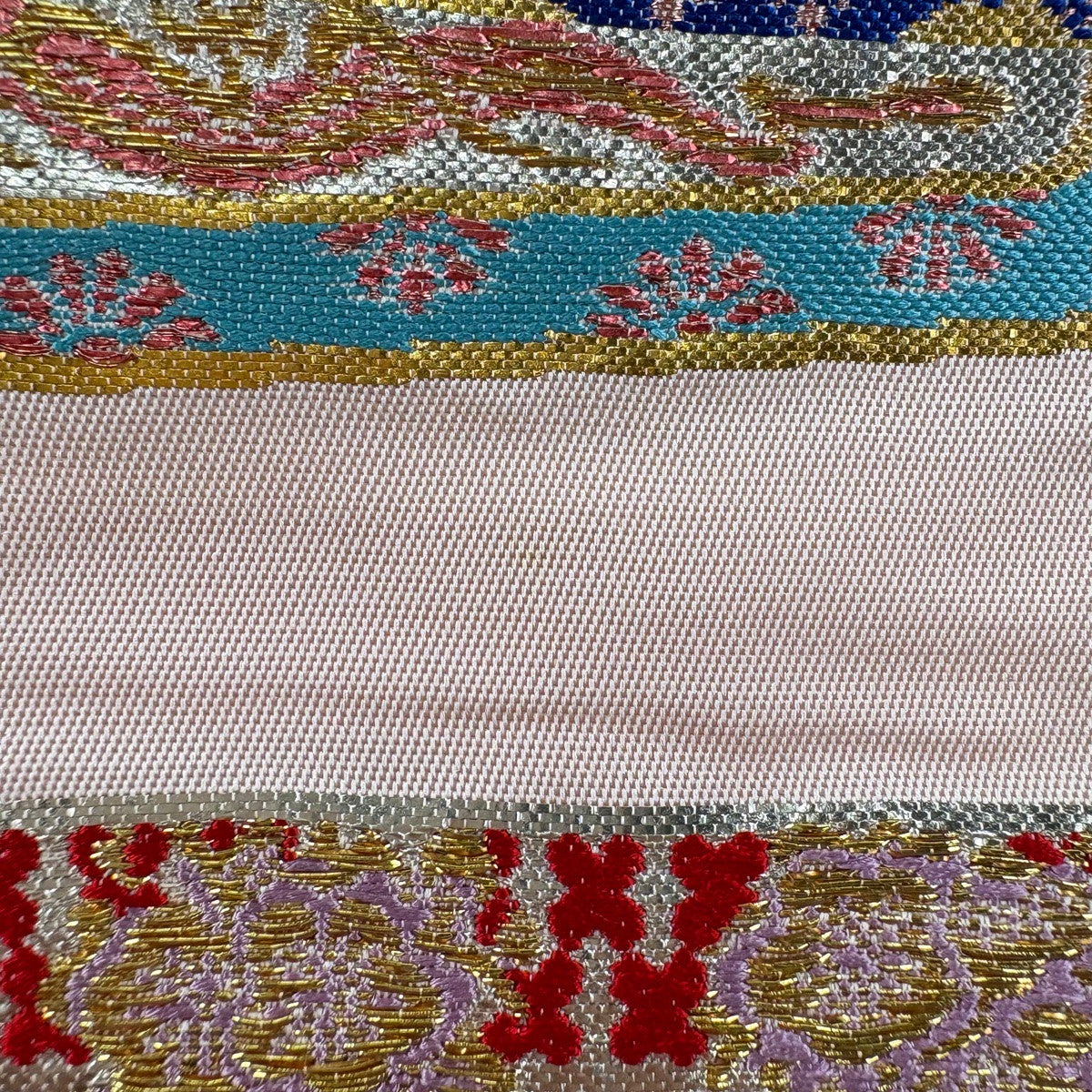 30%OFF 【美品】 袋帯 秀品 振袖向き 草花 波 箔 金銀糸 薄ピンク 六通 正絹 K30