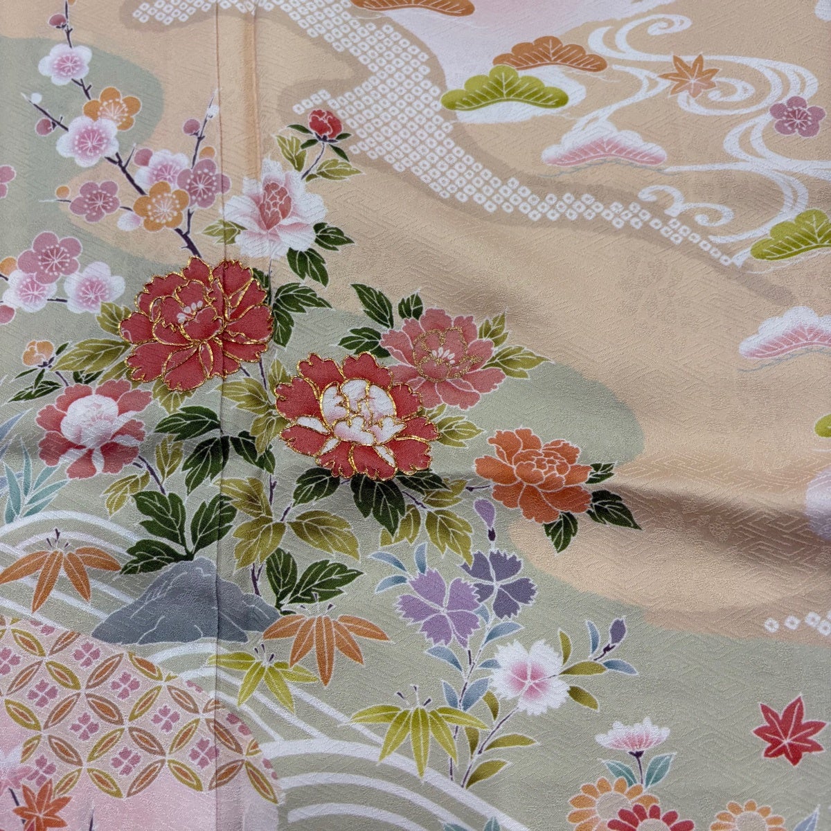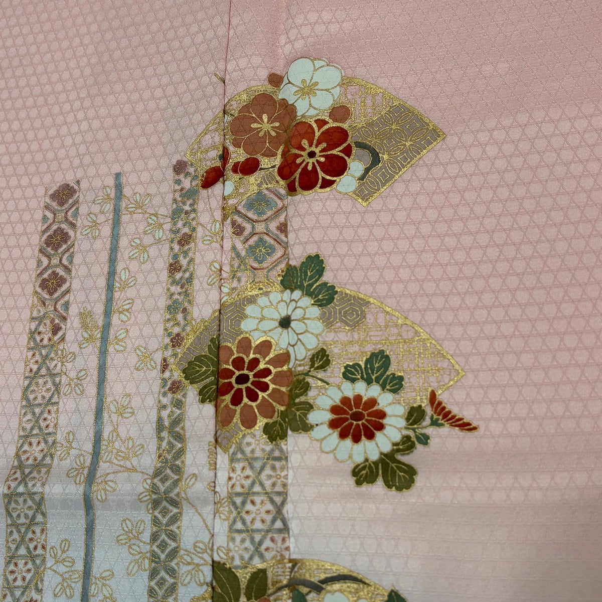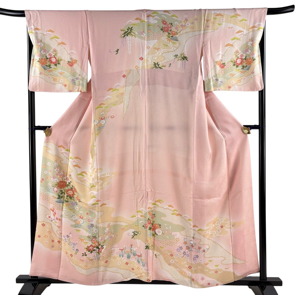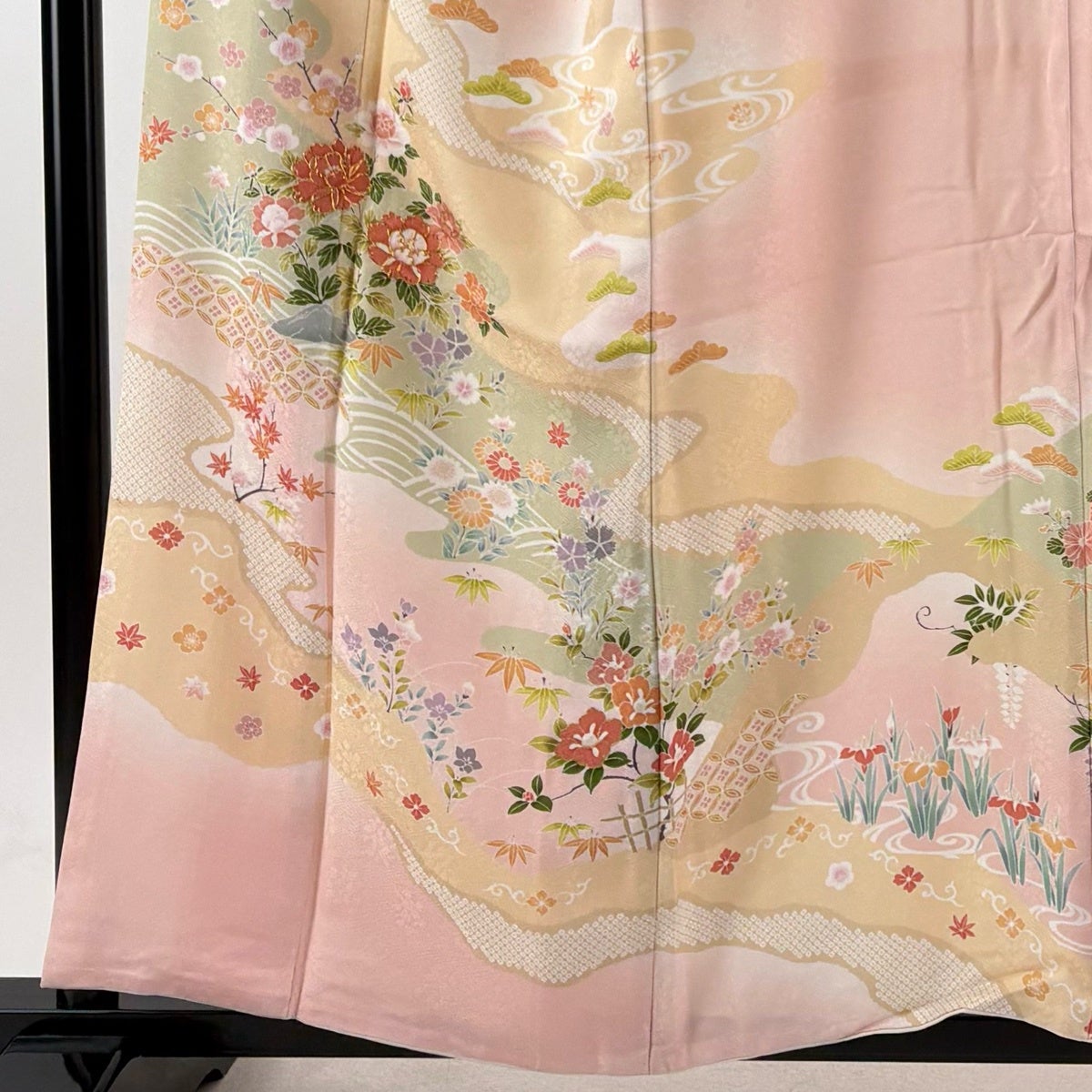 訪問着 身丈157.5cm 裄丈67cm M 袷 牡丹 松竹梅 金糸 ぼかし 薄ピンク 正絹 名品