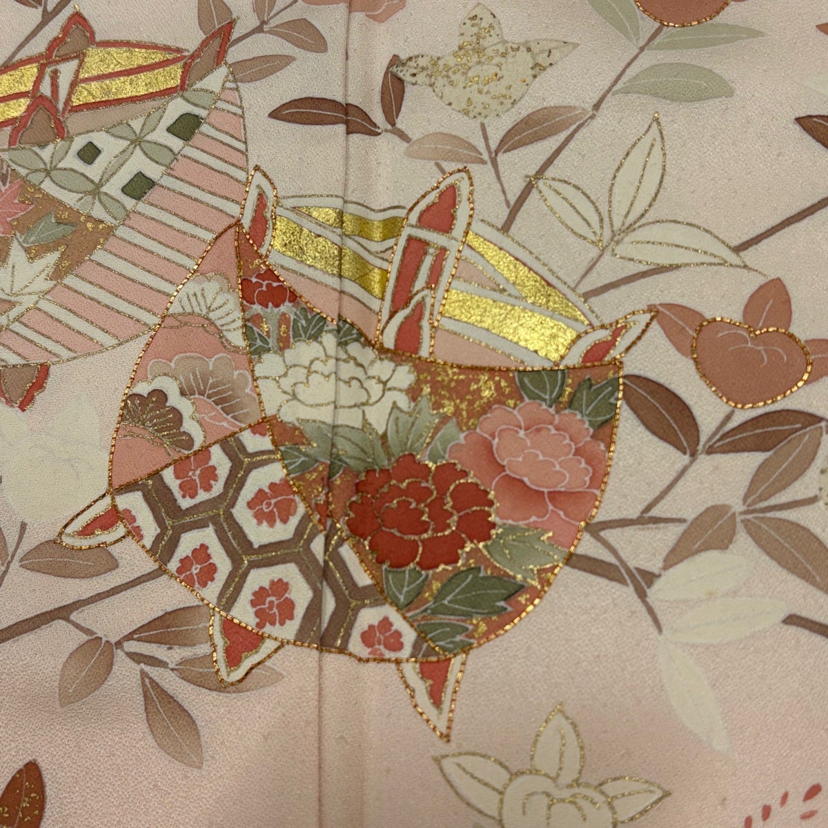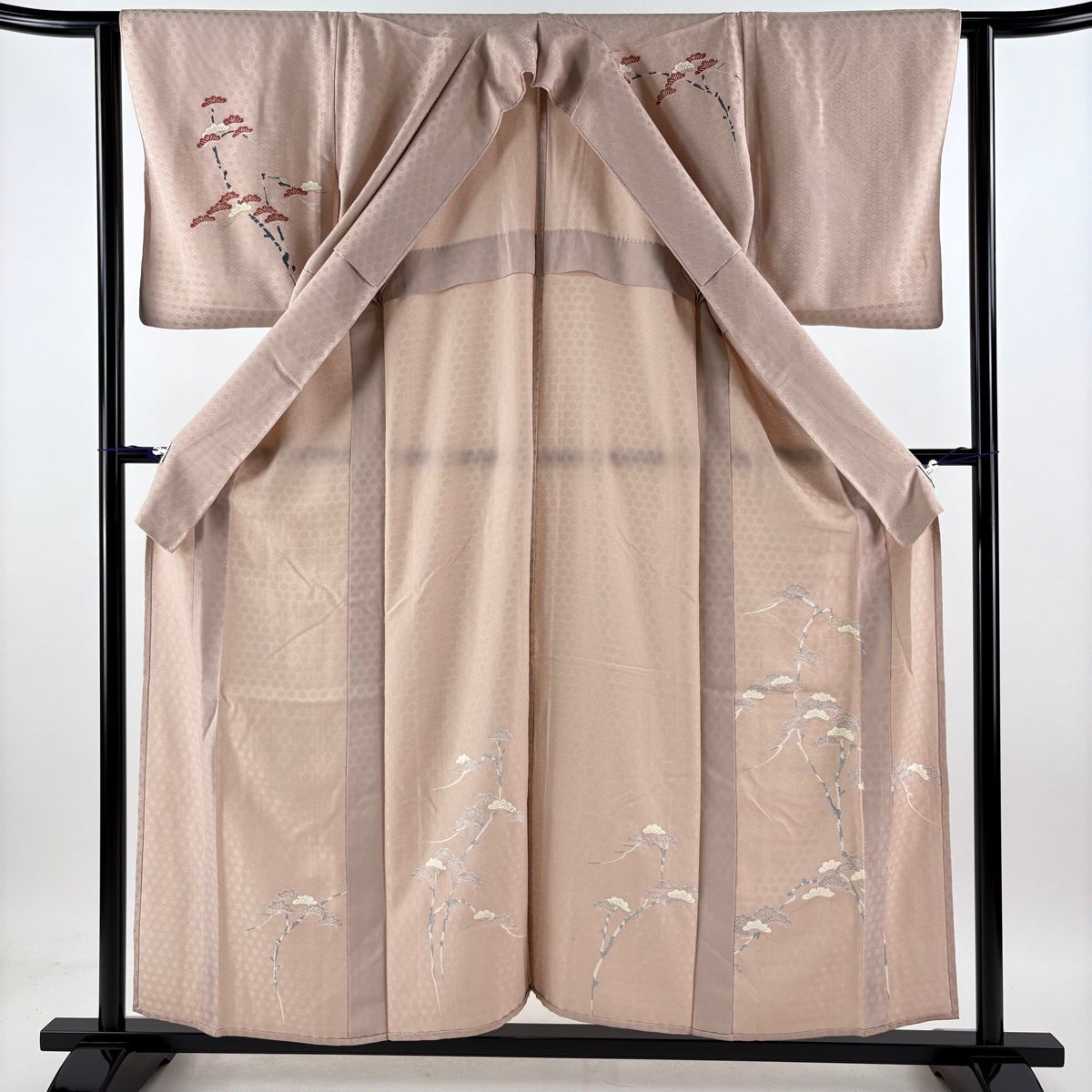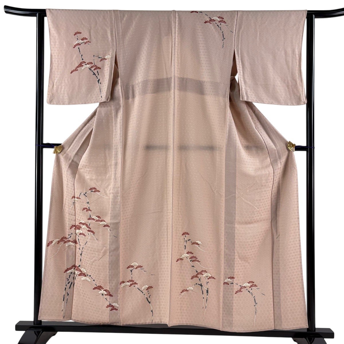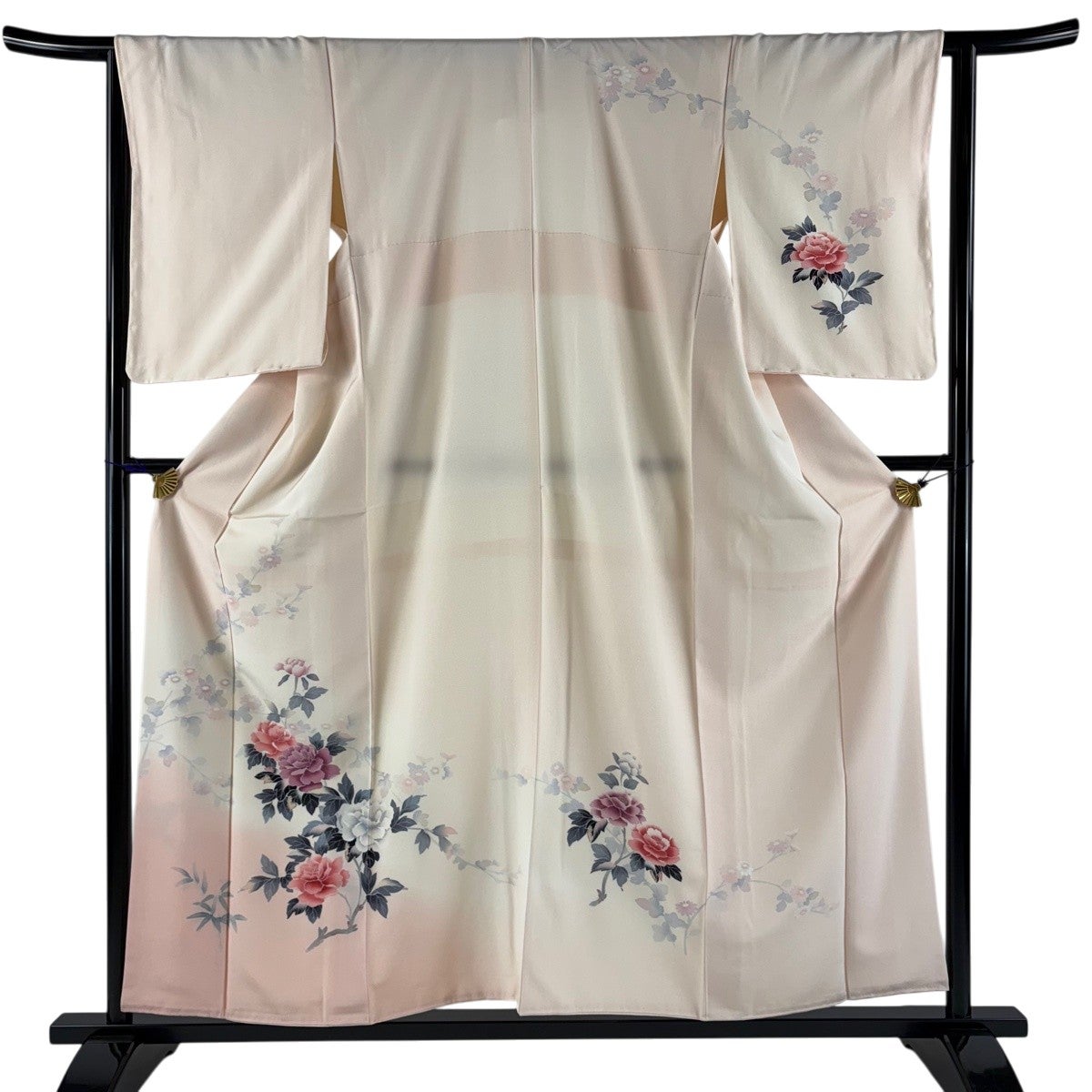 訪問着 身丈157.5cm 裄丈67cm M 袷 牡丹 松竹梅 金糸 ぼかし 薄ピンク 正絹 名品