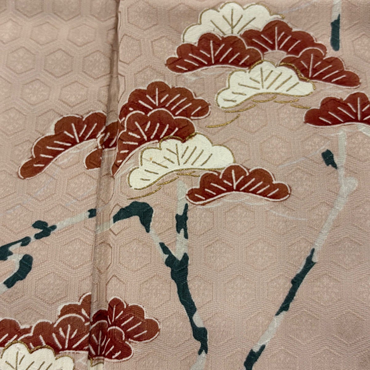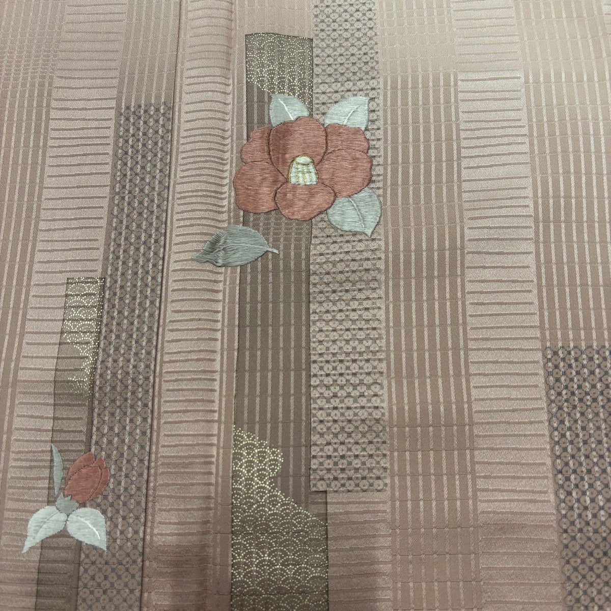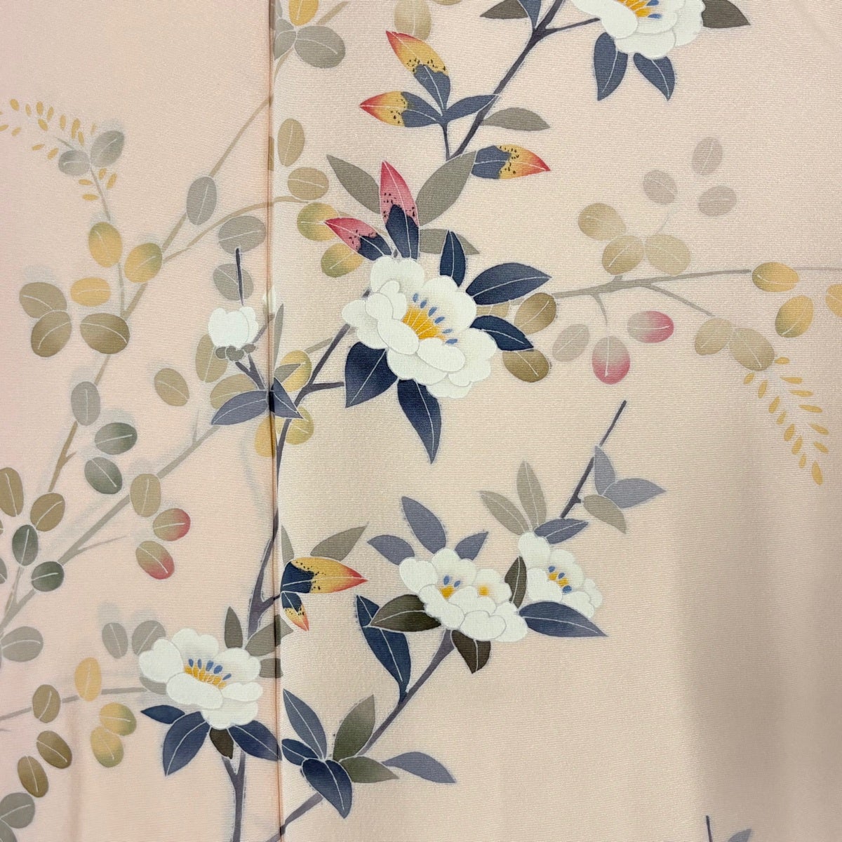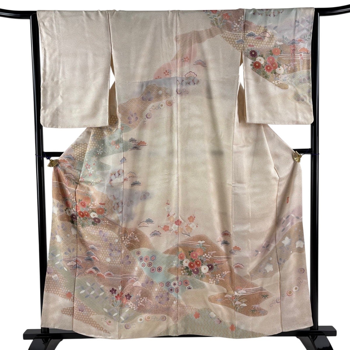 訪問着 身丈157.5cm 裄丈67cm M 袷 牡丹 松竹梅 金糸 ぼかし 薄ピンク 正絹 名品
