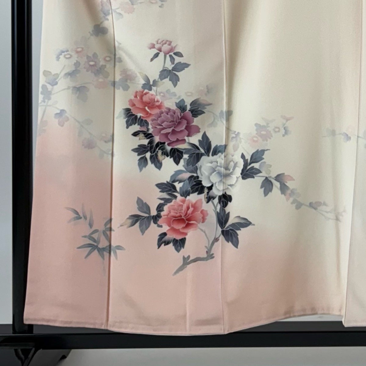 【美品】 訪問着 身丈157cm 裄丈64.5cm M 袷 牡丹 菊 ぼかし 薄ピンク 正絹 秀品