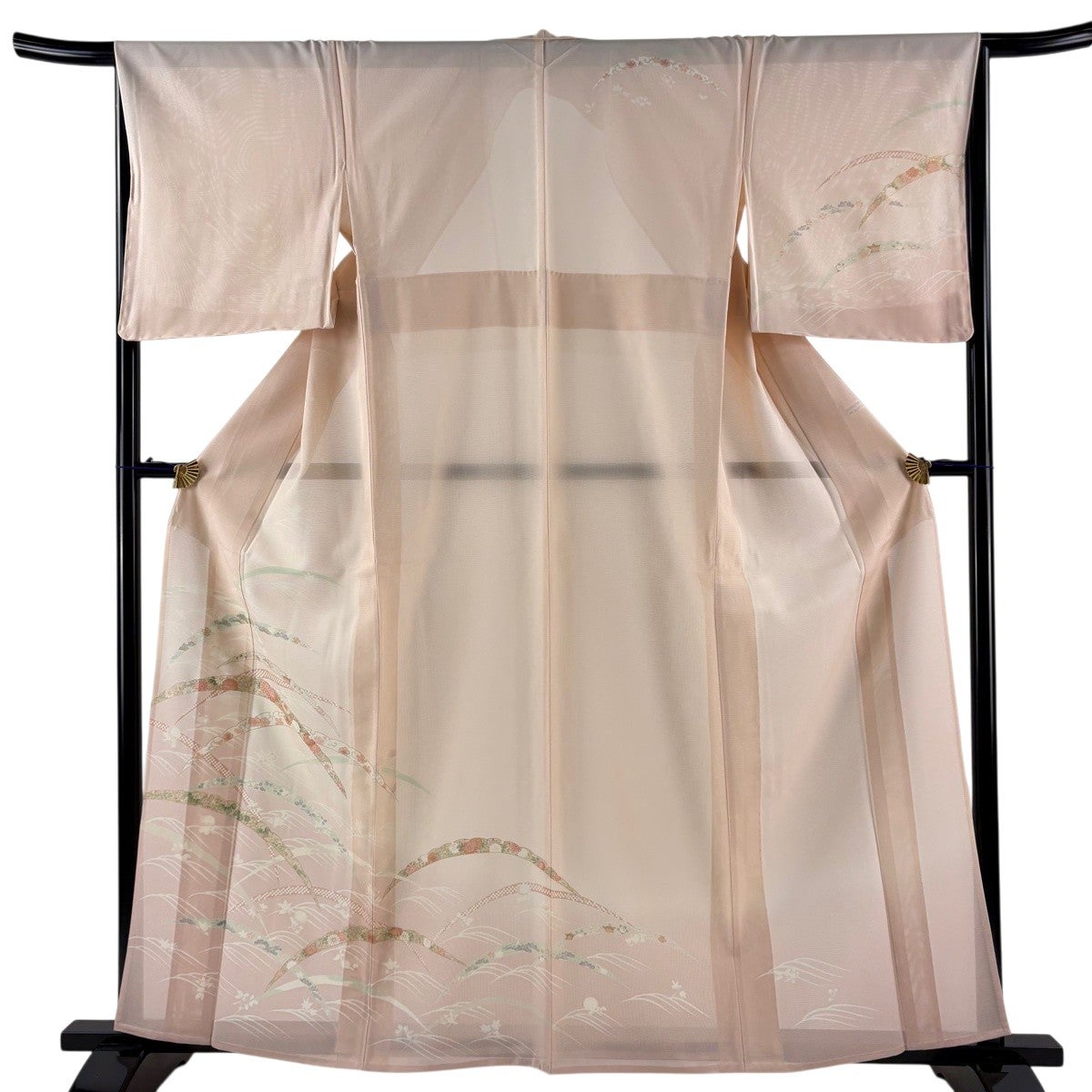訪問着 身丈161.5cm 裄丈65cm M 薄物 絽 雪芝 草花 金彩 ぼかし 薄ピンク 正絹 秀品