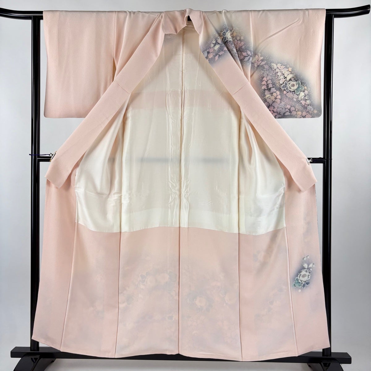 他の画像を見る 50%OFF 【美品】 訪問着 身丈153.5cm 裄丈61.5cm S 単衣 草花 霞 金彩 ぼかし 薄ピンク 正絹 名品 K50 当店通常価格 ¥ 21,800 ¥ 10,900 税込