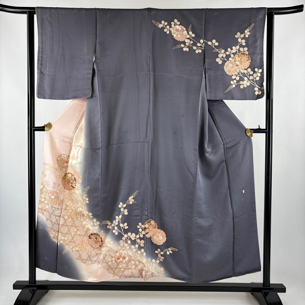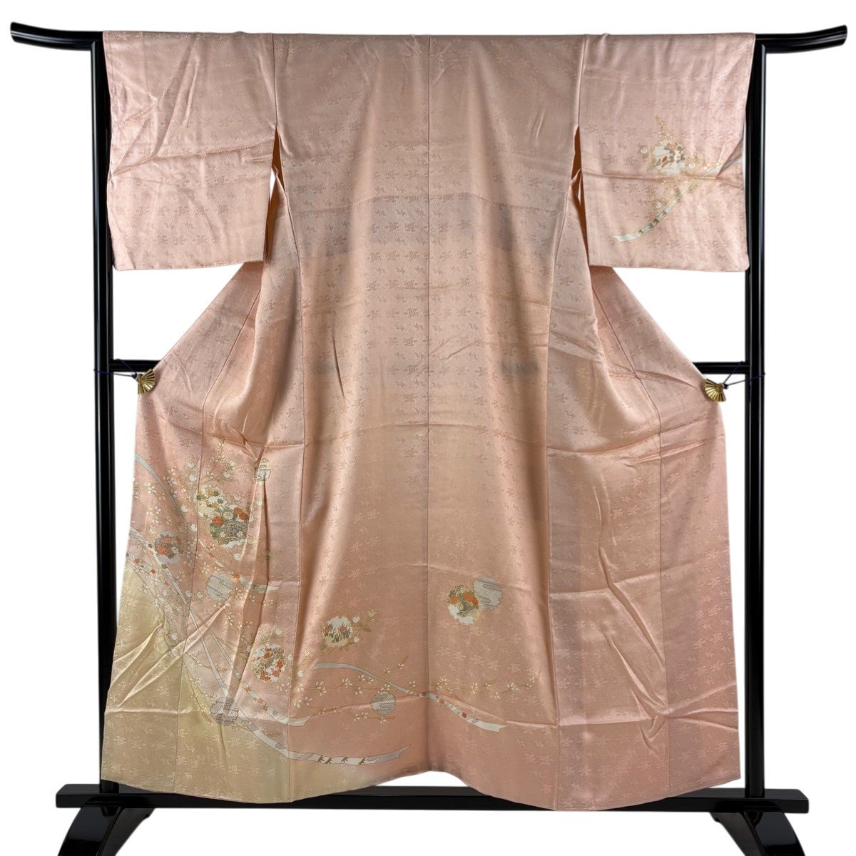 他の画像を見る 30%OFF 訪問着 身丈163.5cm 裄丈64cm M 袷 山本寛斎 落款あり 扇 草花 金銀彩 ぼかし 薄ピンク 正絹 秀品 K30 当店通常価格 ¥ 8,800 ¥ 6,160 税込