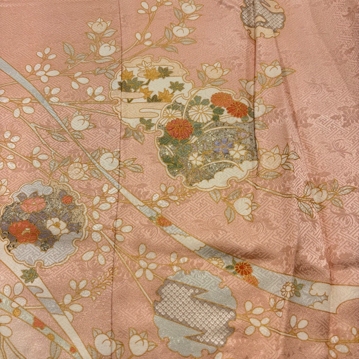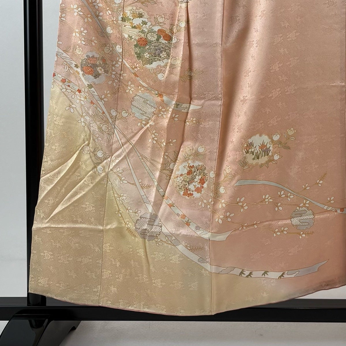 他の画像を見る 70%OFF 訪問着 身丈165cm 裄丈63.5cm S 袷 落款あり 枝梅 扇面 染め分け ぼかし 薄ピンク 正絹 名品 K70 当店通常価格 ¥ 17,800 ¥ 5,340 税込
