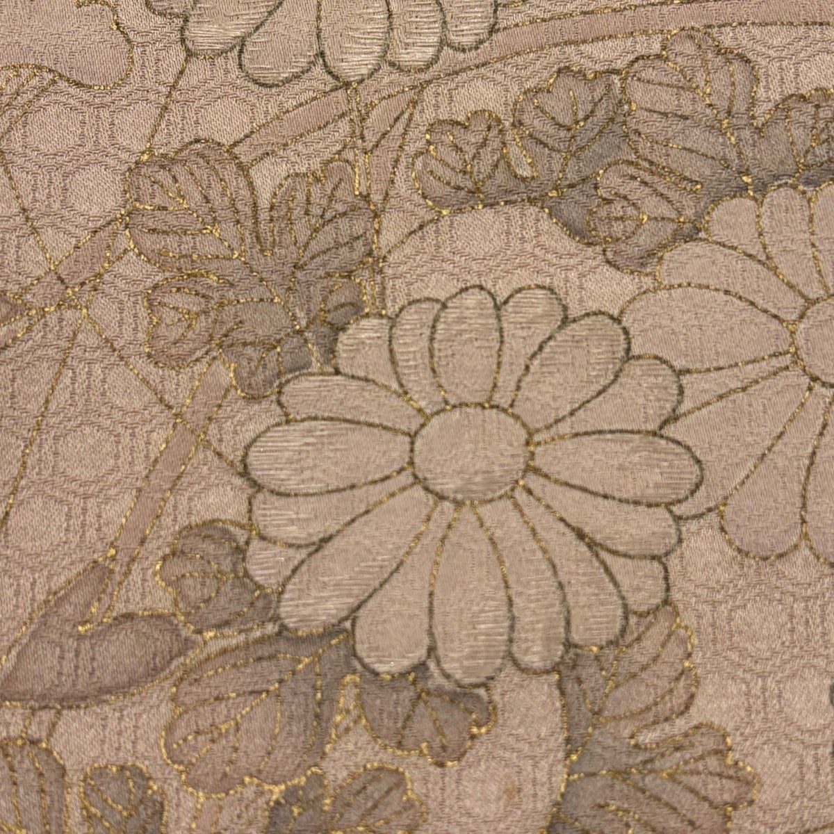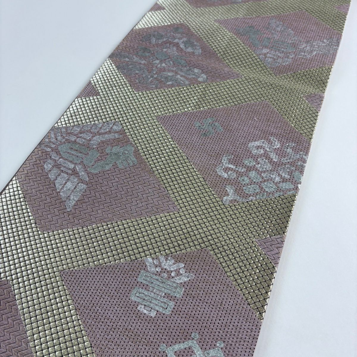 70%OFF 【美品】 袋帯 秀品 草花 格子 金通し 薄小豆 お太鼓柄 正絹 K70