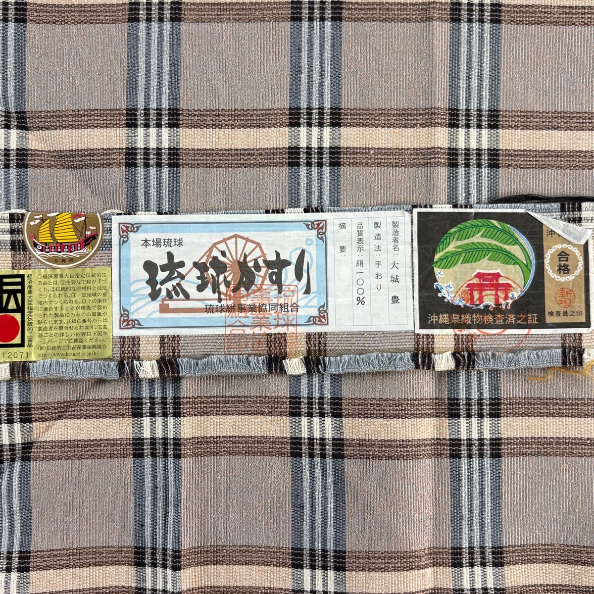 【美品】 名古屋帯 逸品 証紙あり 琉球かすり 八寸名古屋帯 松葉仕立て 格子 薄小豆 正絹