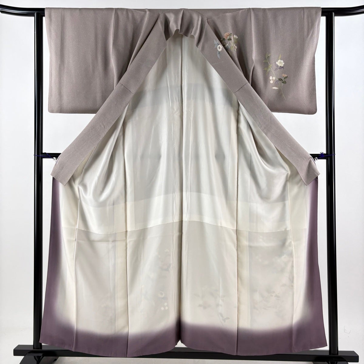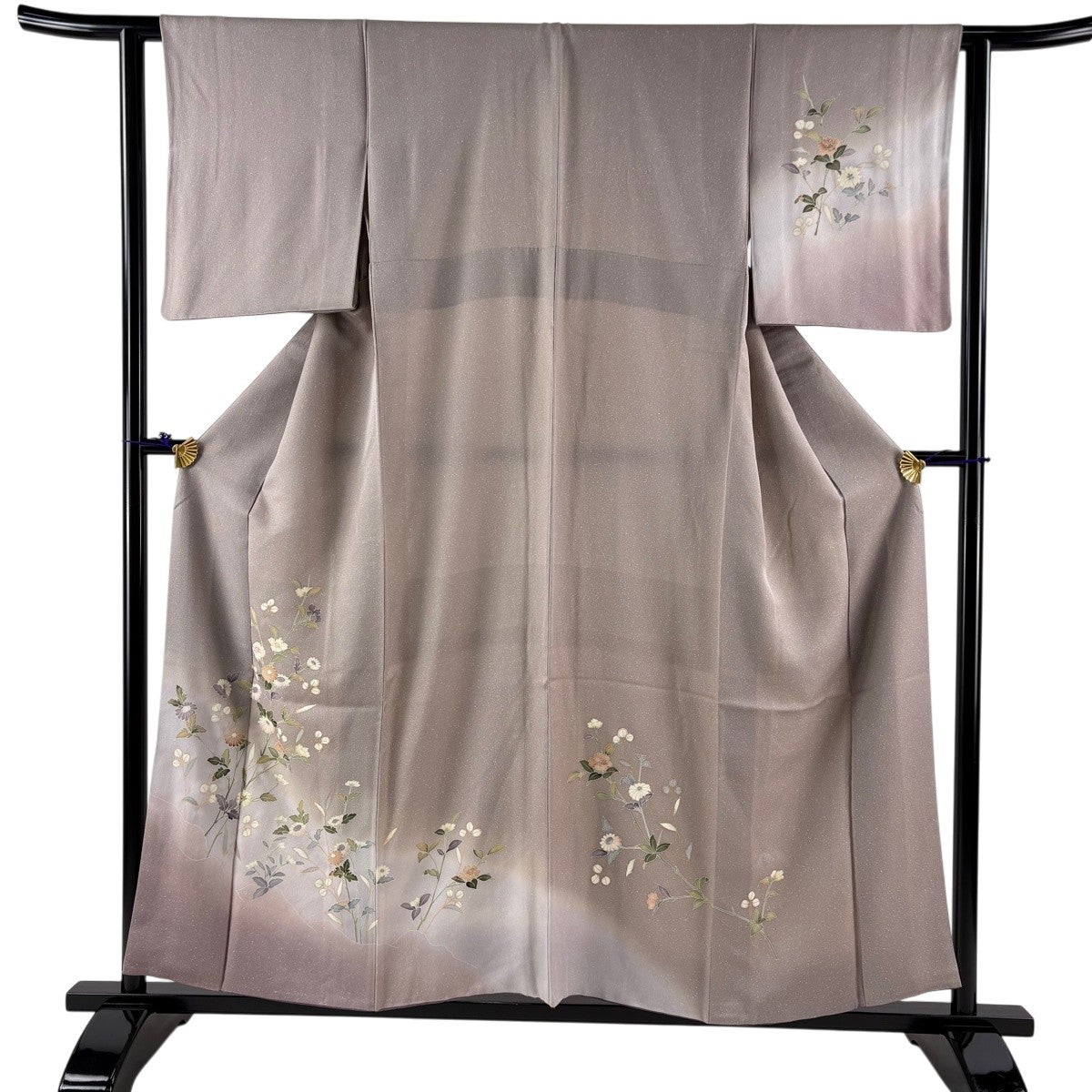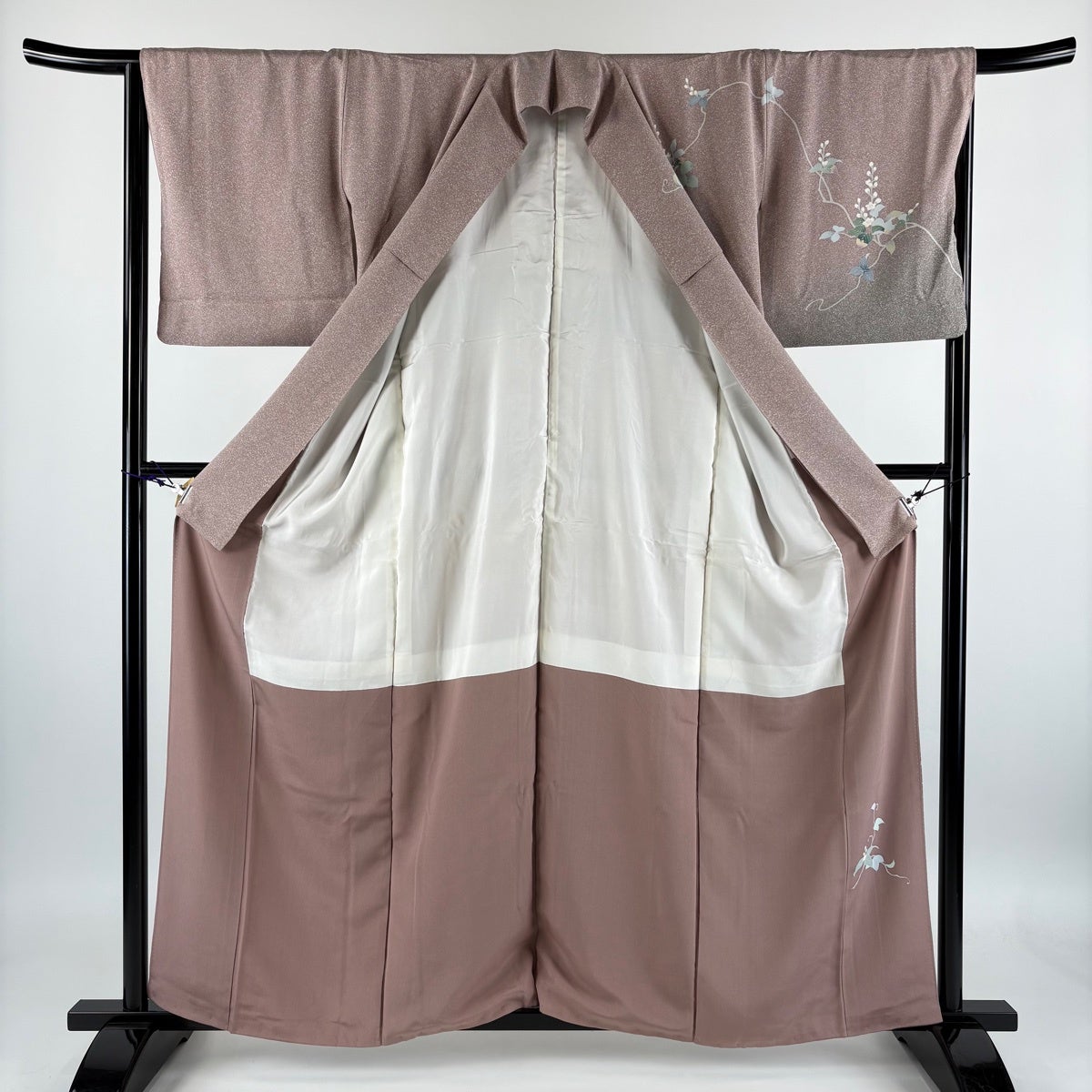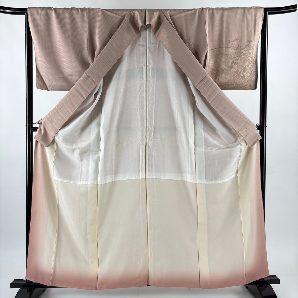 訪問着 身丈161cm 裄丈69cm L 薄物 絽 草花 金彩 ぼかし 薄小豆 正絹 秀品