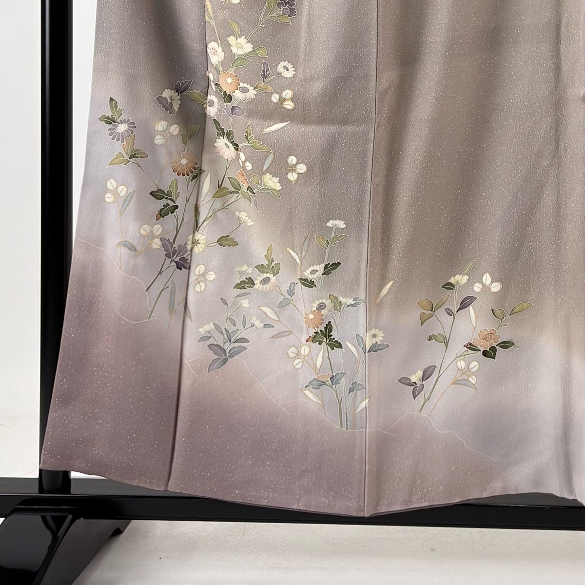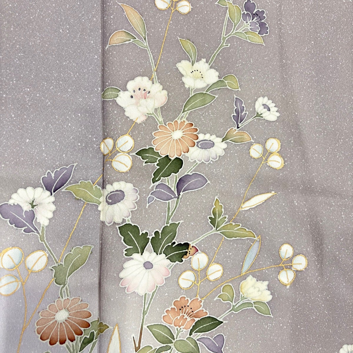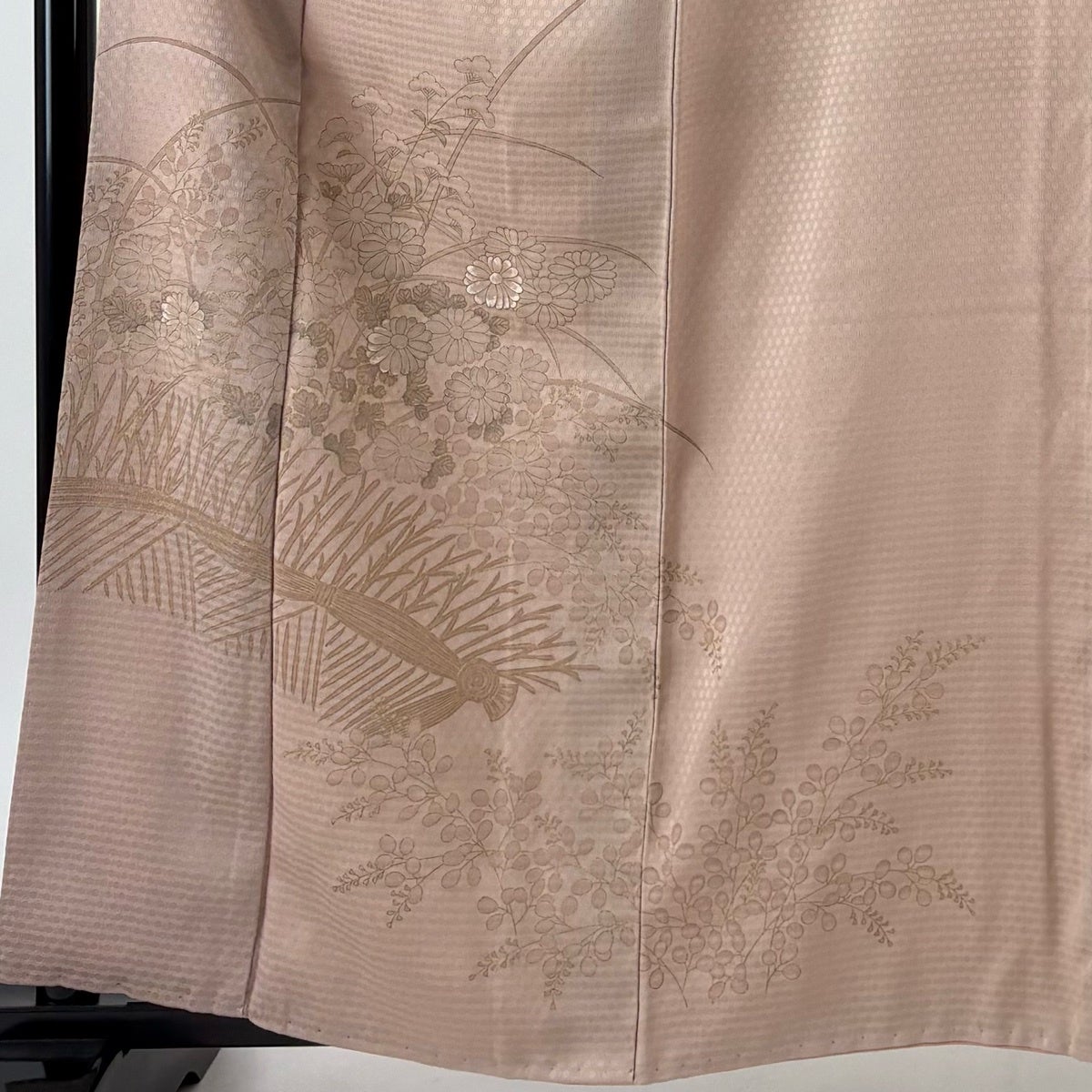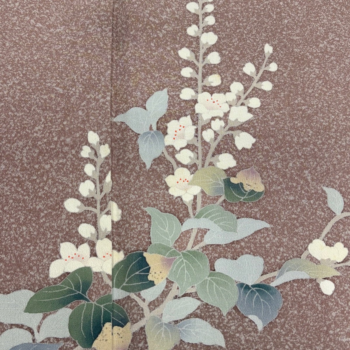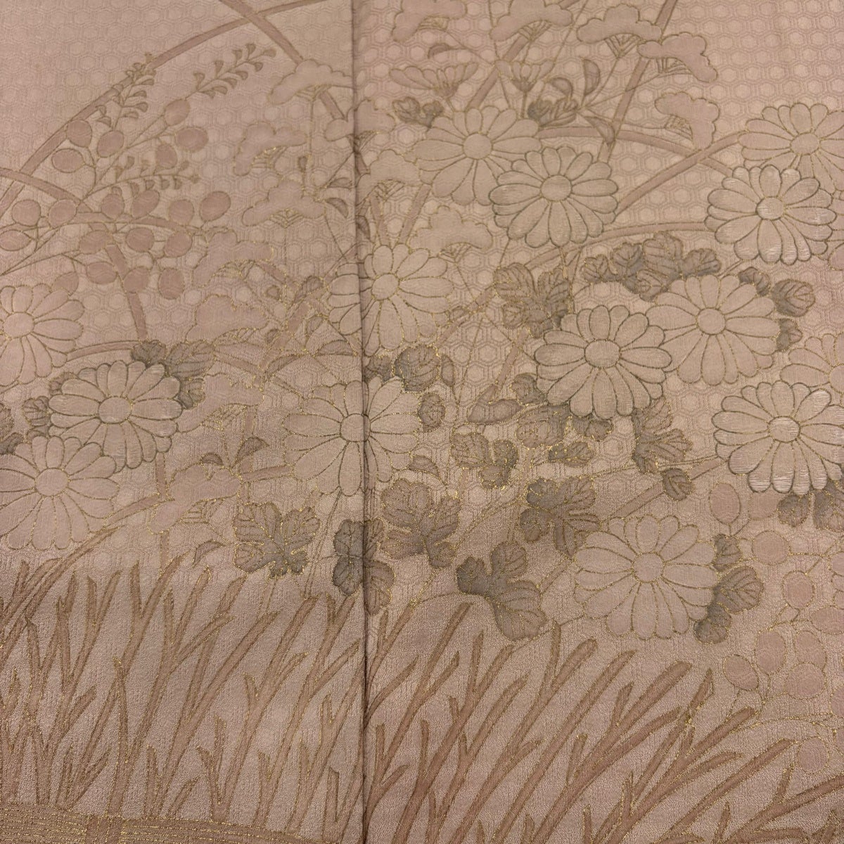 付下げ 身丈162cm 裄丈64cm M 袷 秋草 地紋 金彩 薄小豆 正絹 優品 一つ紋