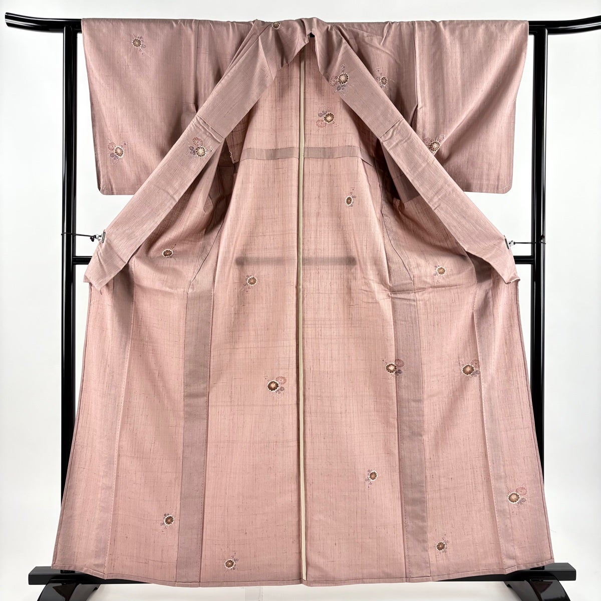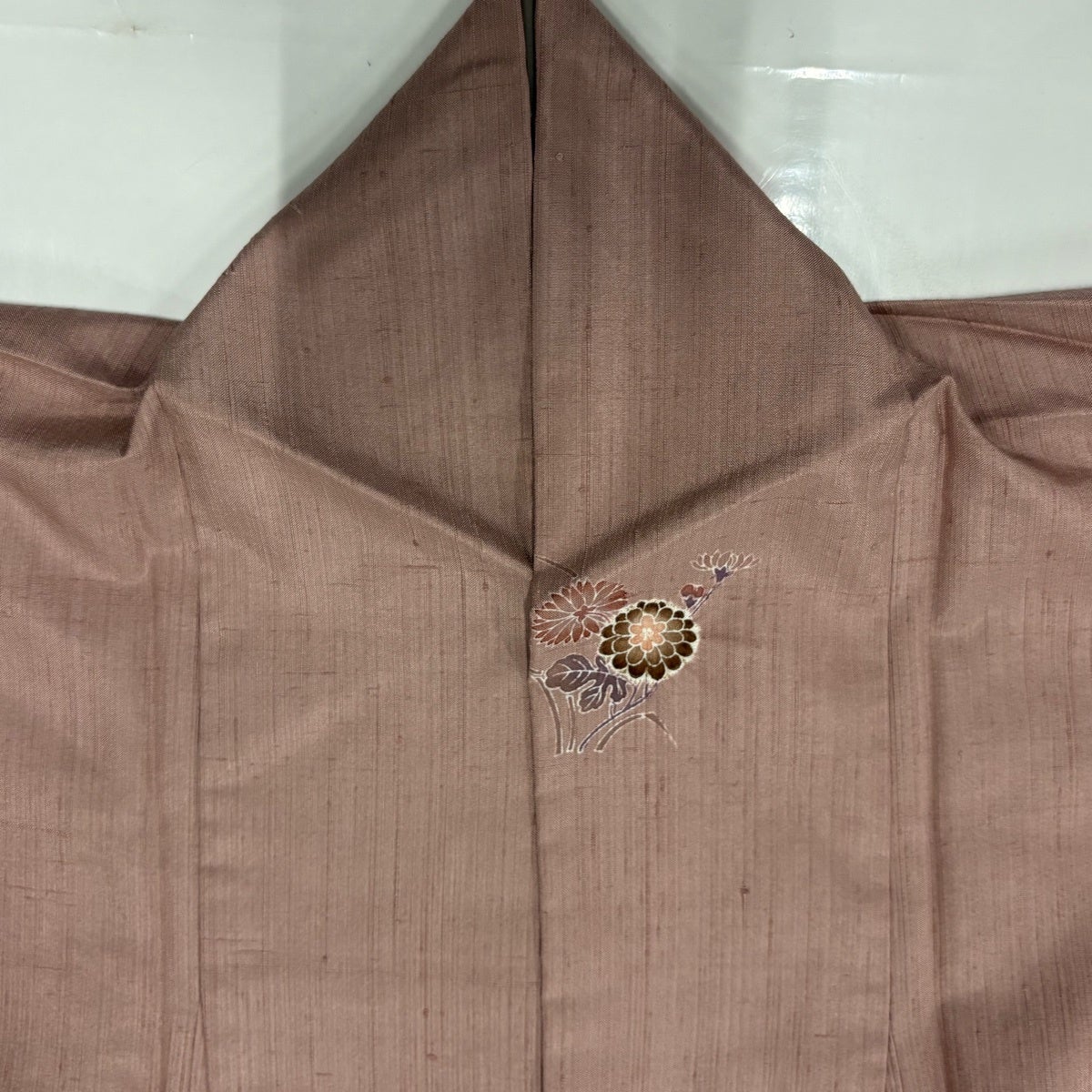 色無地 身丈153cm 裄丈61.5cm S 袷 地紋 薄小豆 正絹 優品 一つ紋