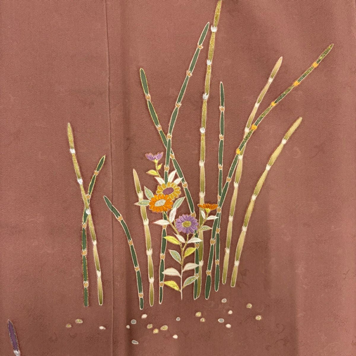 【在庫一掃】 訪問着 身丈164cm 裄丈67cm M 袷 松 萩 金彩 刺繍 薄小豆 正絹 秀品 一つ紋