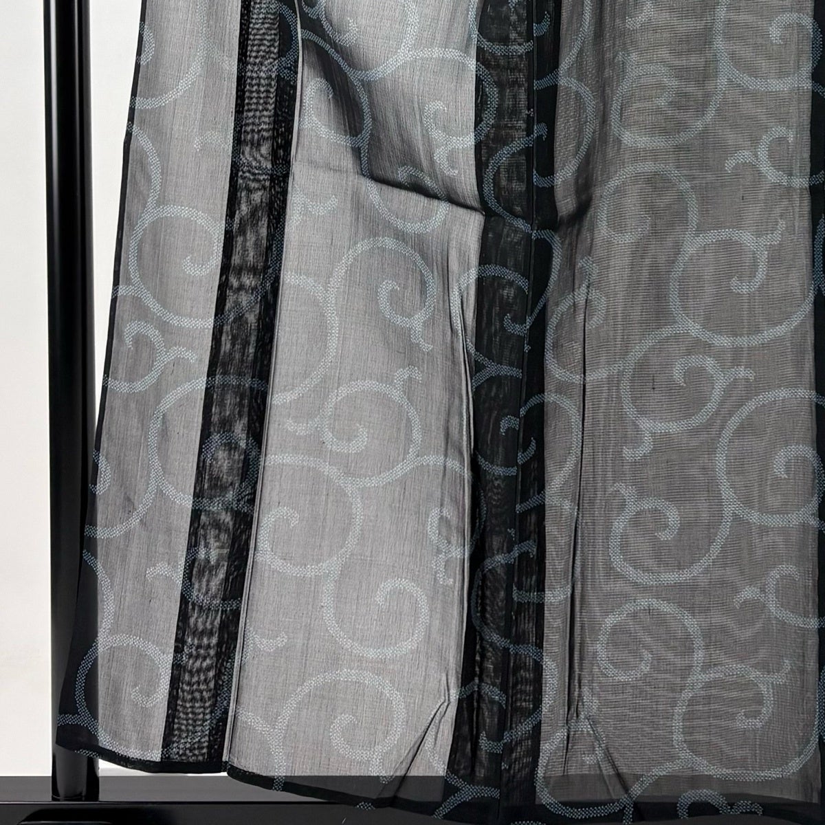 紬 身丈157.5cm 裄丈65cm M 薄物 夏紬 唐草 黒 正絹 名品