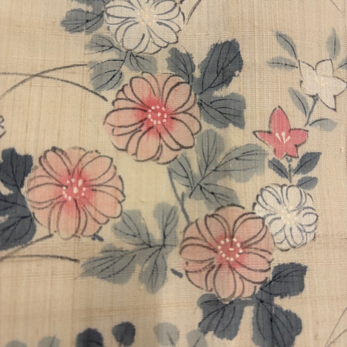 小紋 身丈155.5cm 裄丈62.5cm S 薄物 紬地 草花 ベージュ 正絹 秀品