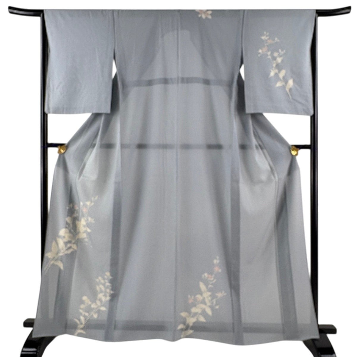 付下げ 身丈158cm 裄丈63cm S 薄物 霞 萩 金糸 ぼかし 灰白 正絹 秀品