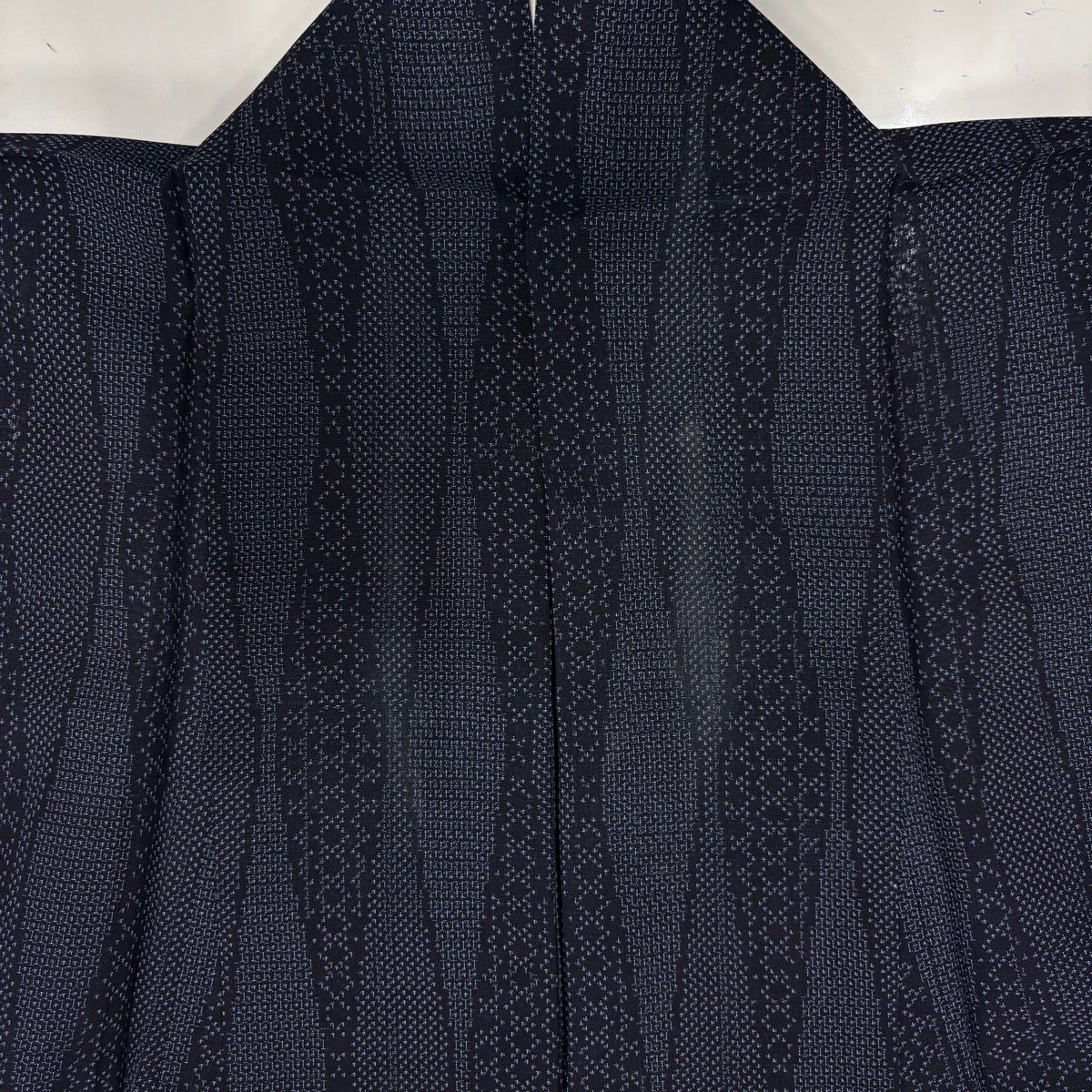 【美品】 紬 身丈160cm 裄丈66cm M 薄物 夏大島 幾何学 紺色 正絹 逸品