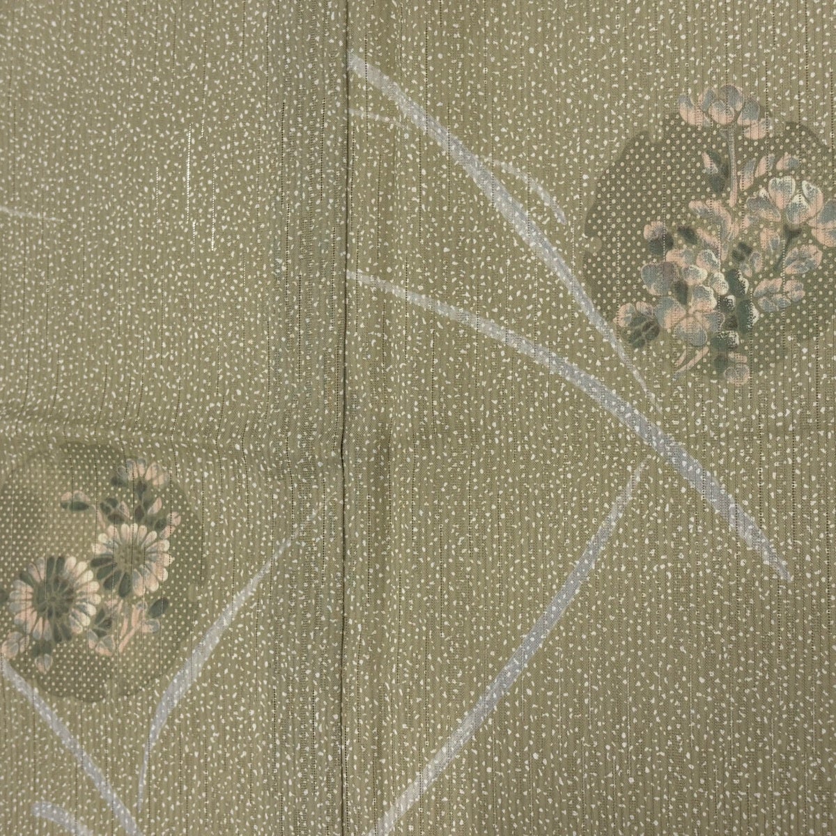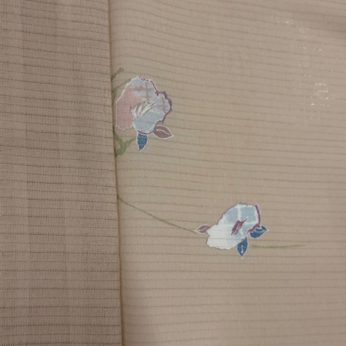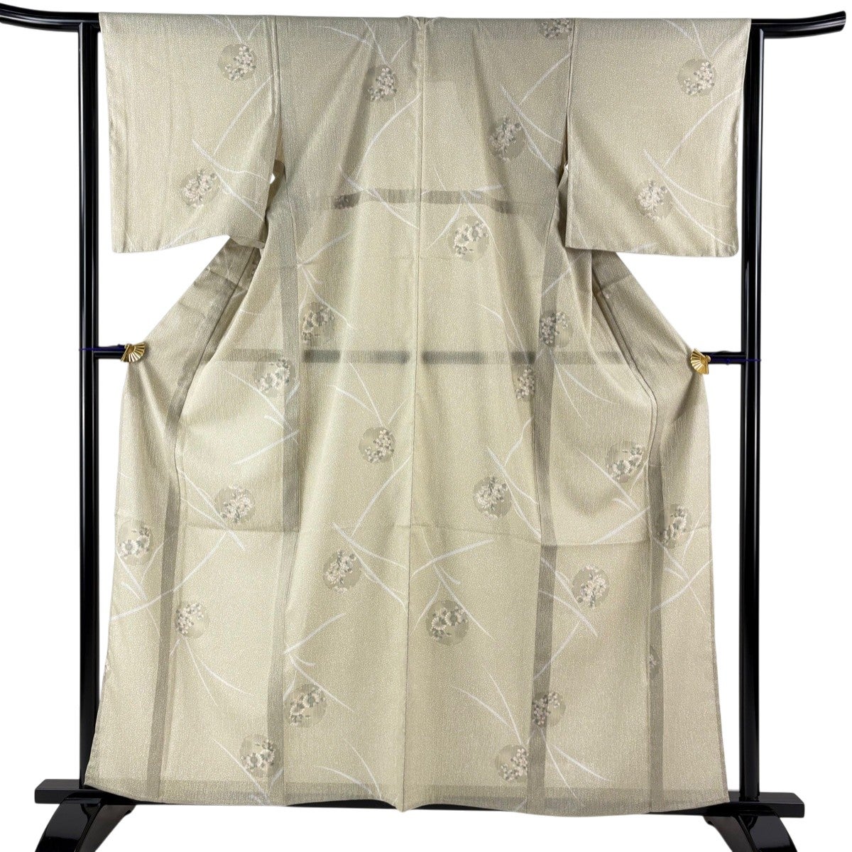 【美品】 小紋 身丈158cm 裄丈65cm M 薄物 絽 花 銀彩 ベージュ 正絹 秀品