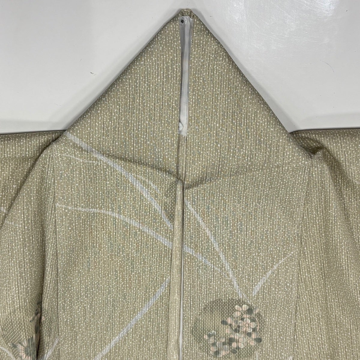 【美品】 紬 身丈150cm 裄丈62cm S 薄物 夏紬 バチ衿 灰緑 正絹 秀品 一つ紋