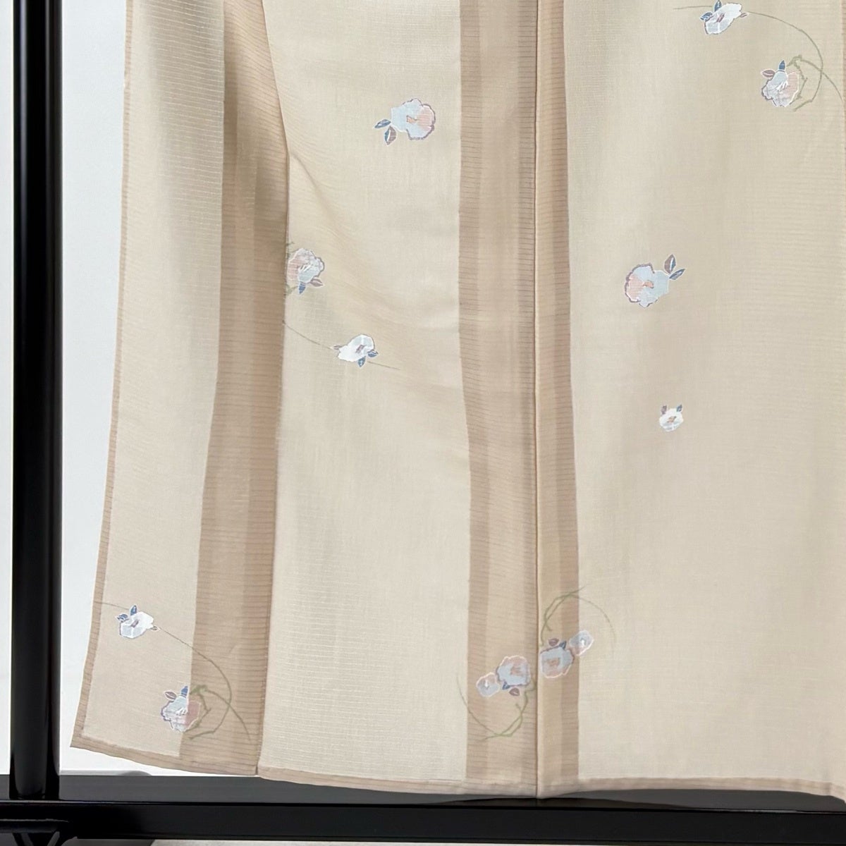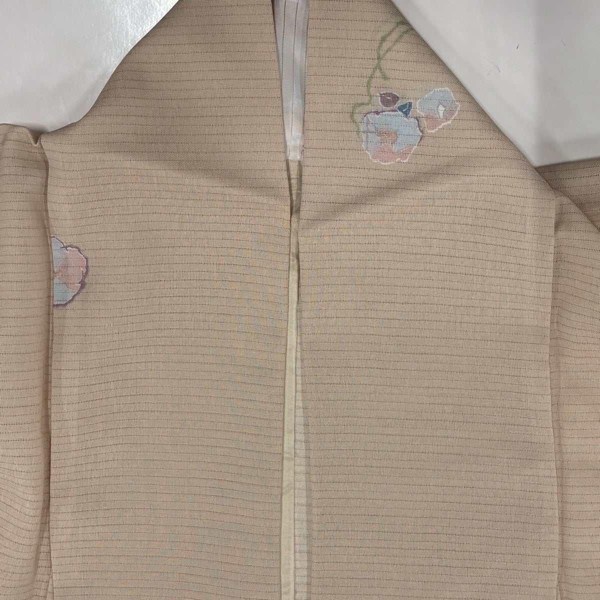付下げ 身丈154.5cm 裄丈64cm M 薄物 夏紬地 鯉 草花 ベージュ 正絹 秀品