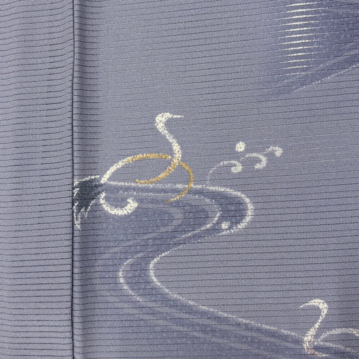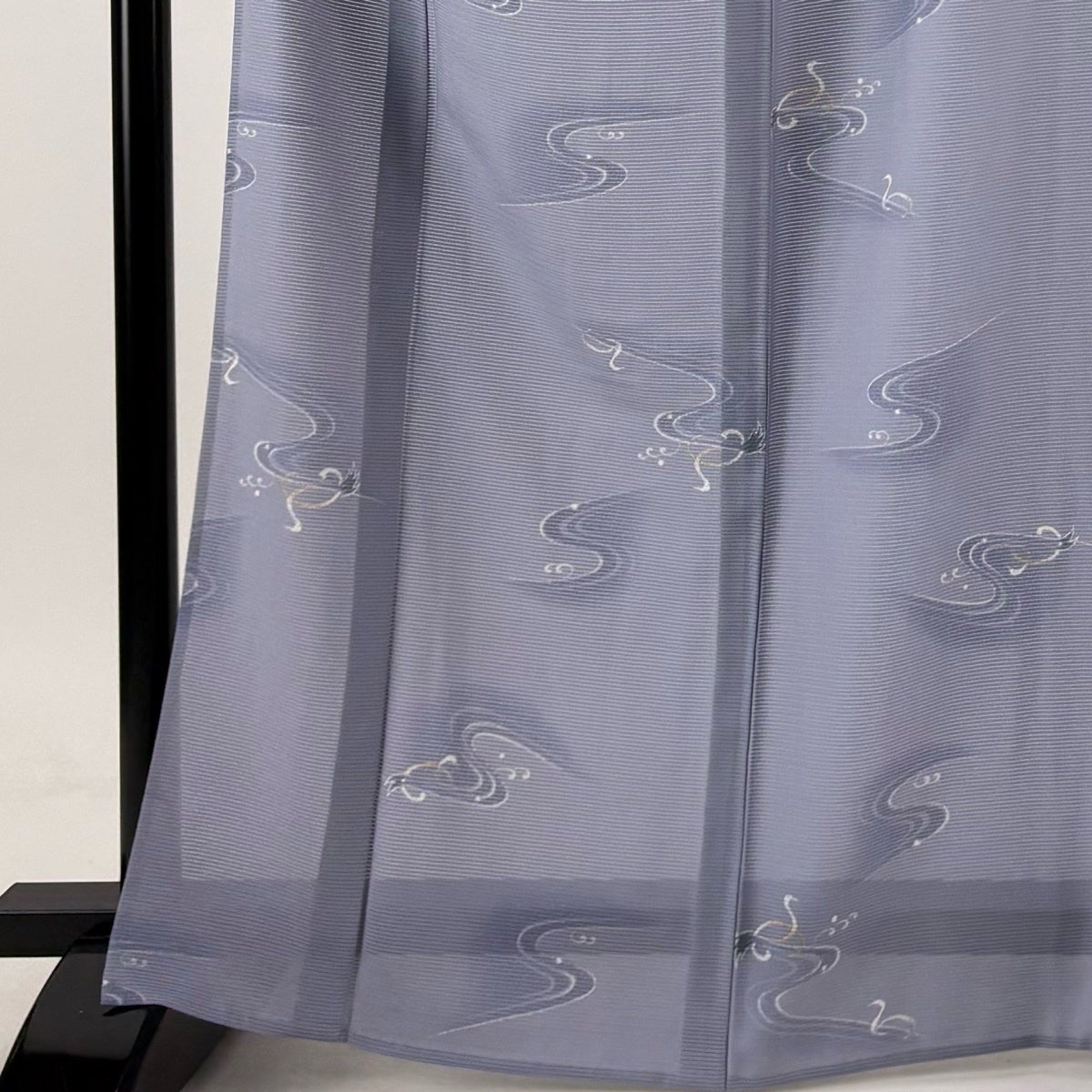 【美品】 小紋 身丈166cm 裄丈63cm S 薄物 絽 流水 鳥 金彩 青灰色 正絹 秀品
