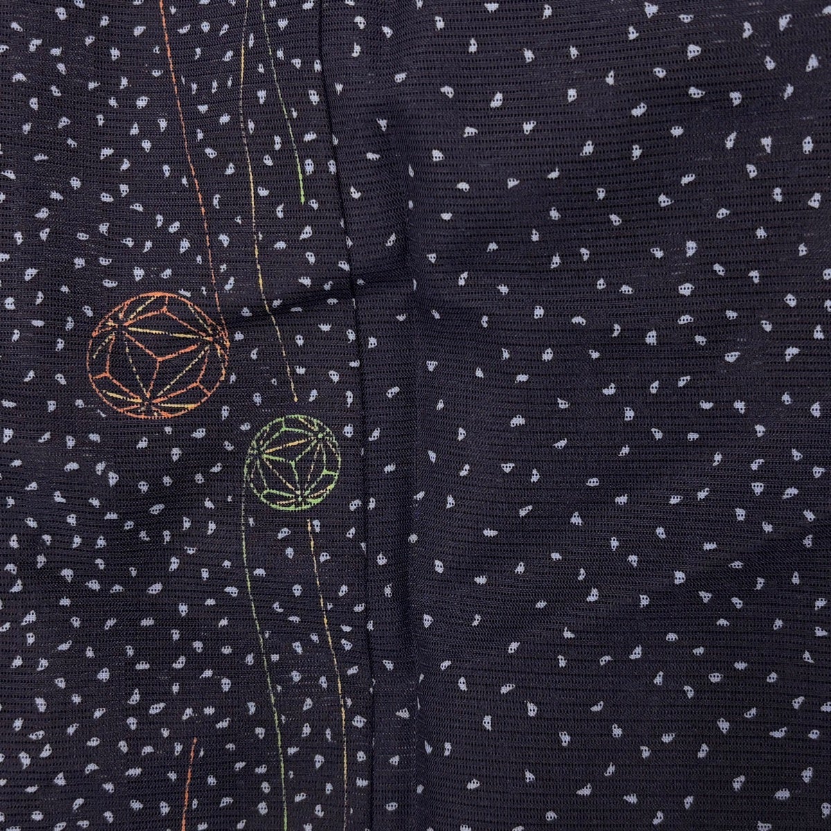 【美品】 小紋 身丈161cm 裄丈66cm M 薄物 絽 手鞠 幾何学模様 紺色 正絹 秀品