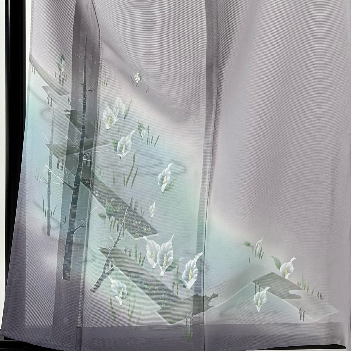 付下げ 身丈161cm 裄丈66cm M 袷 風景 シルエット 金彩 ぼかし 薄紫 正絹 秀品 一つ紋