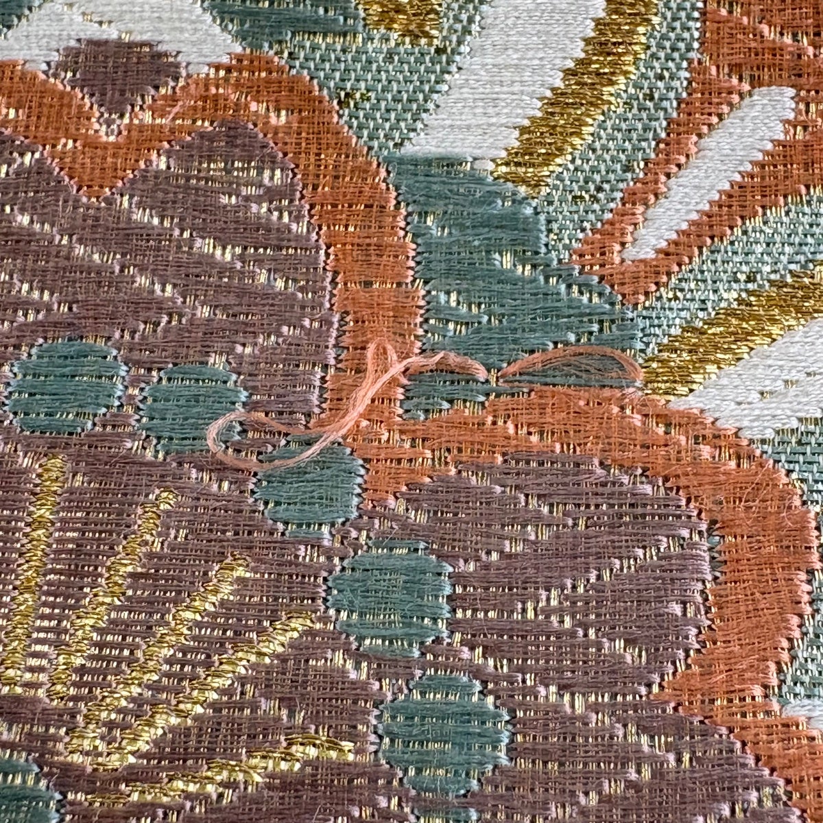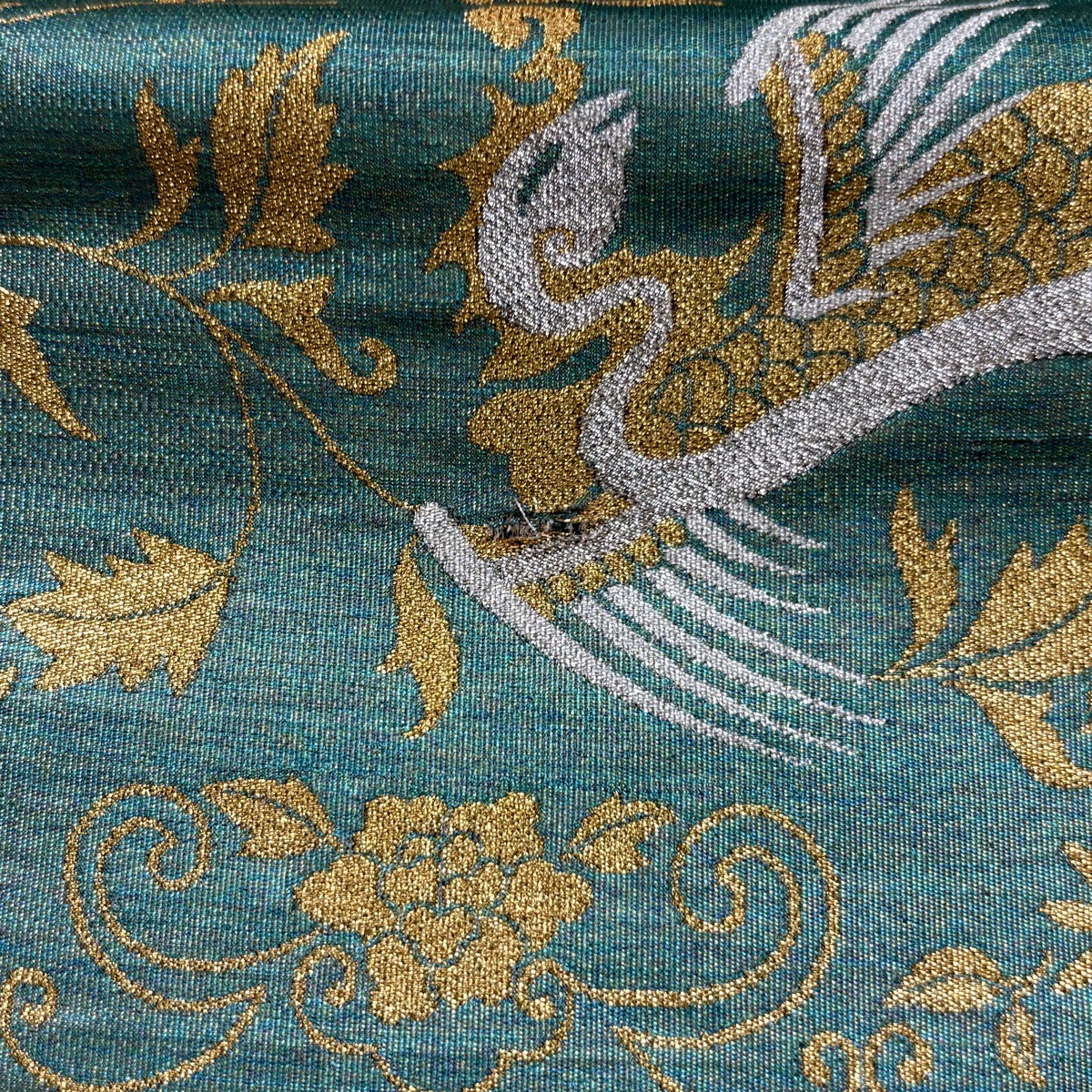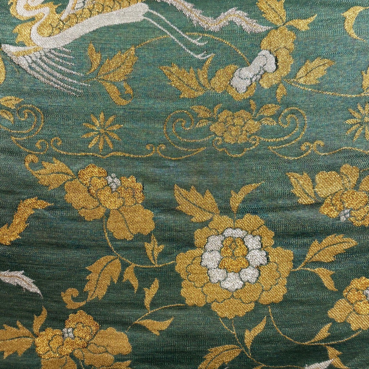 50%OFF 袋帯 秀品 秋草 金銀糸 唐織 薄緑 六通 正絹 K50