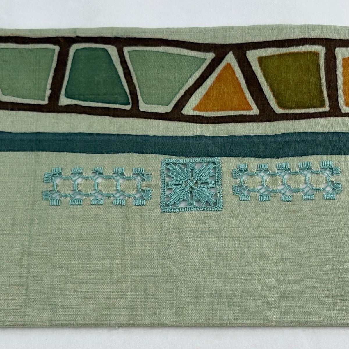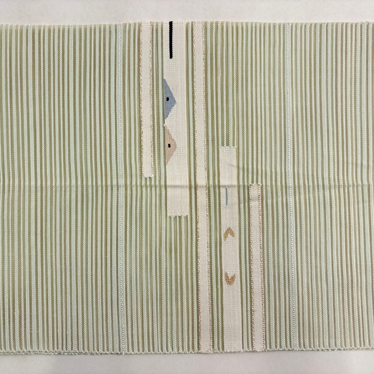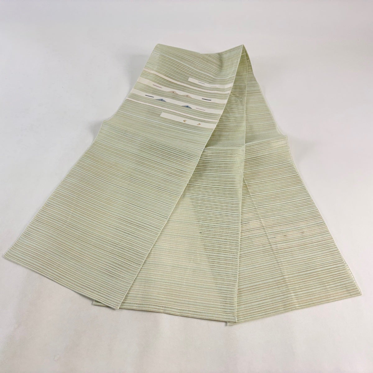 【美品】 名古屋帯 優品 夏帯 絽 縞 幾何学模様 箔 金糸 薄緑 正絹
