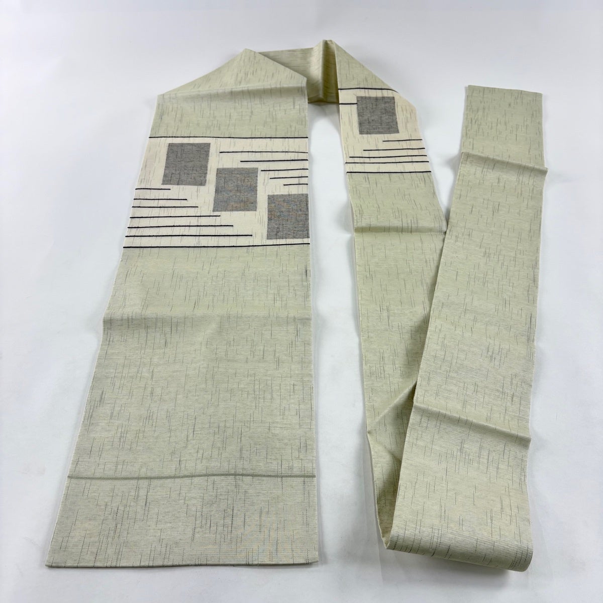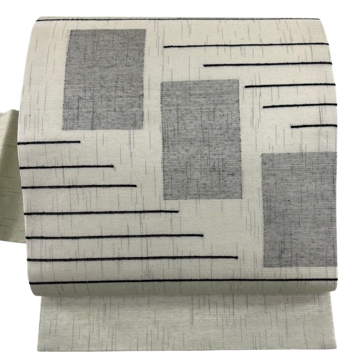 【美品】 名古屋帯 名品 幾何学 鳥 金糸 箔 薄緑 正絹