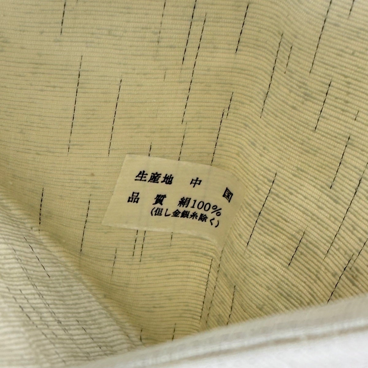 【美品】 袋帯 秀品 草花 金糸 箔 薄緑 六通 正絹