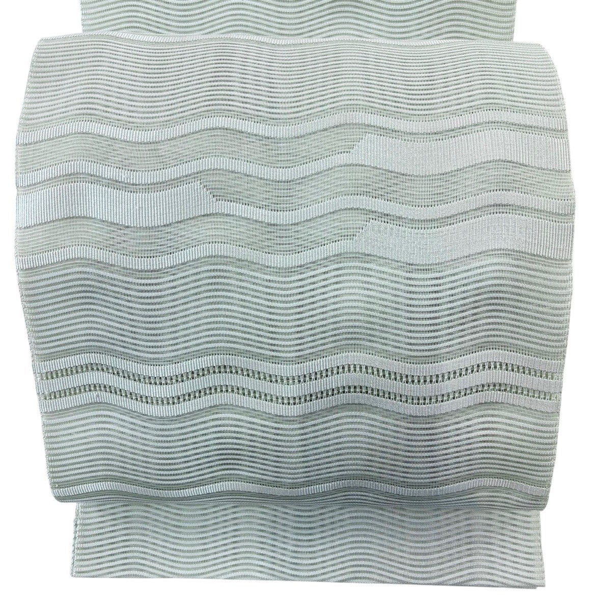 30%OFF 袋帯 秀品 波頭 流水 箔 金糸 薄緑 六通 正絹 K30